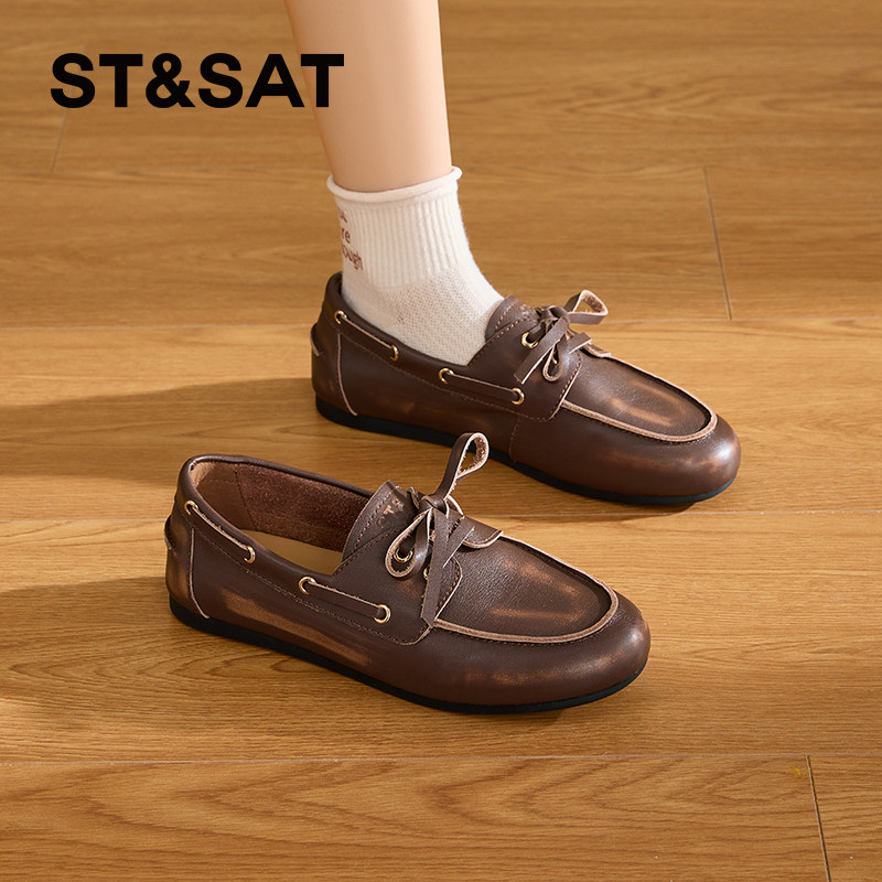 星期六真皮软底乐福鞋女鞋2025春夏新款英伦一脚蹬厚底小皮鞋通勤