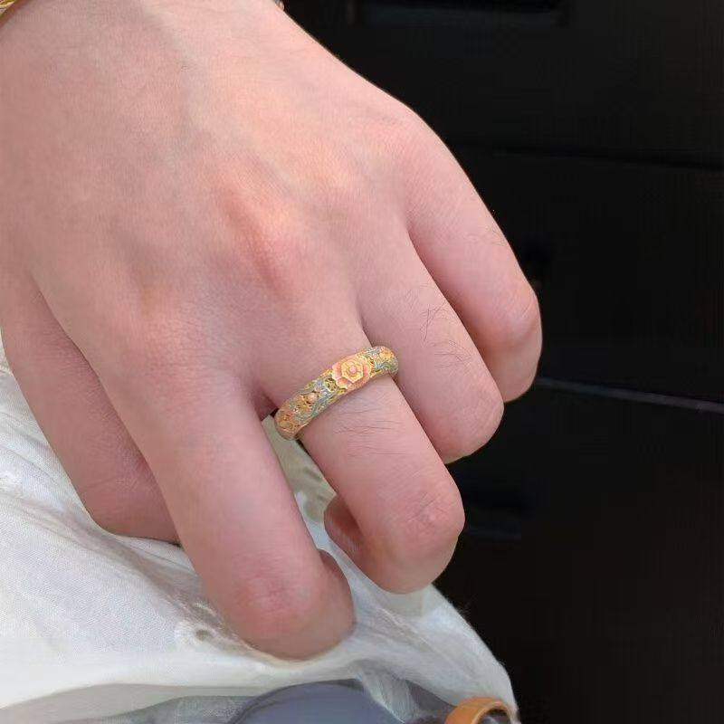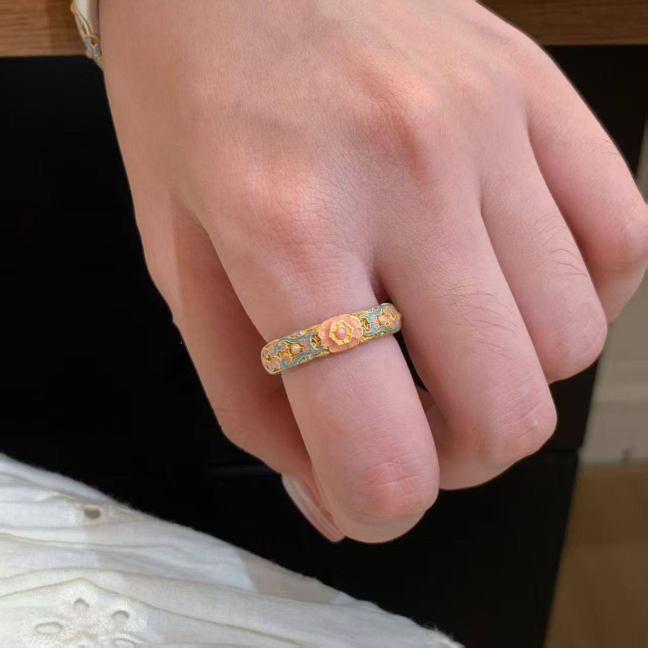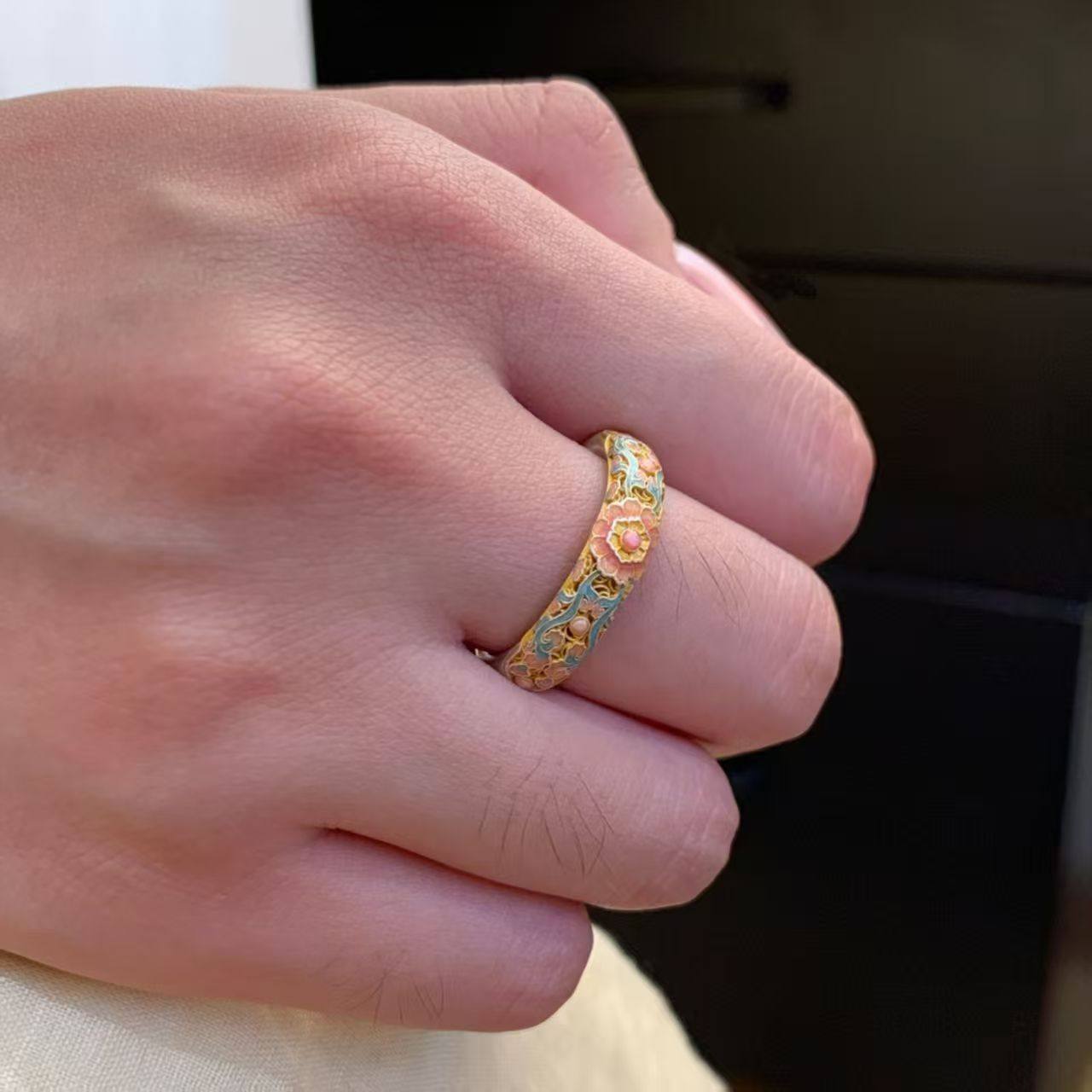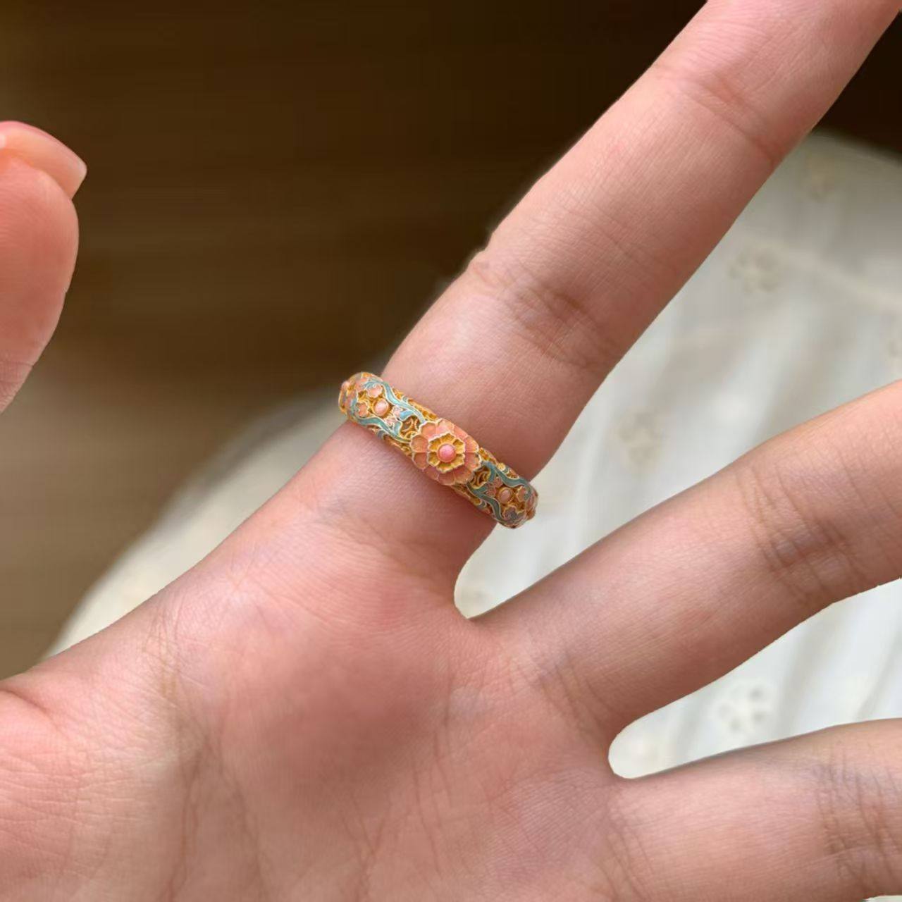 「梨昙司」国风新中式珐琅金色戒指重工轻奢戒指精致配饰2025新款