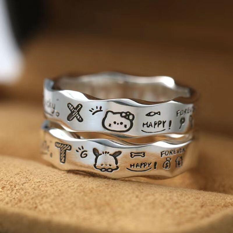 Name.s猫狗情侣对戒999纯银 原创可爱小众男女礼物夜光情侣款戒指