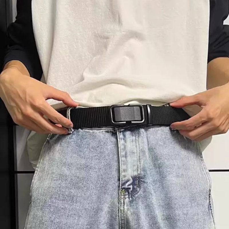 2024新款男士帆布尼龙皮带无孔自动扣帆布腰带轻便超轻薄耐用男款