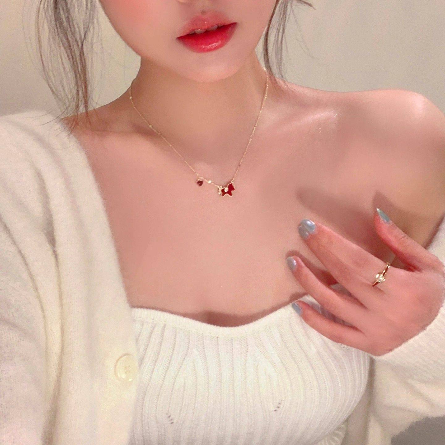 新年红色滴油金边小马项链女轻奢高级感锁骨链配饰气质毛衣链颈链