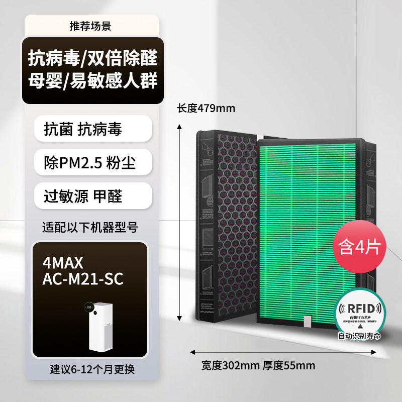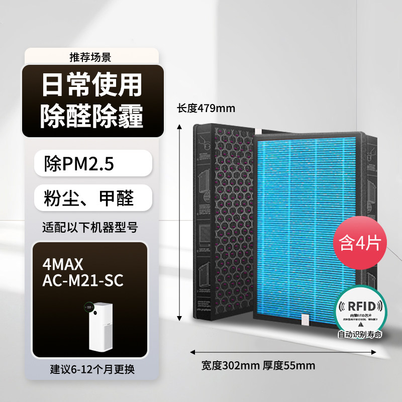 霓鸣适配小米空气净化器滤芯4MAX/MAX/X米家过滤网除甲醛AC-M5-SC