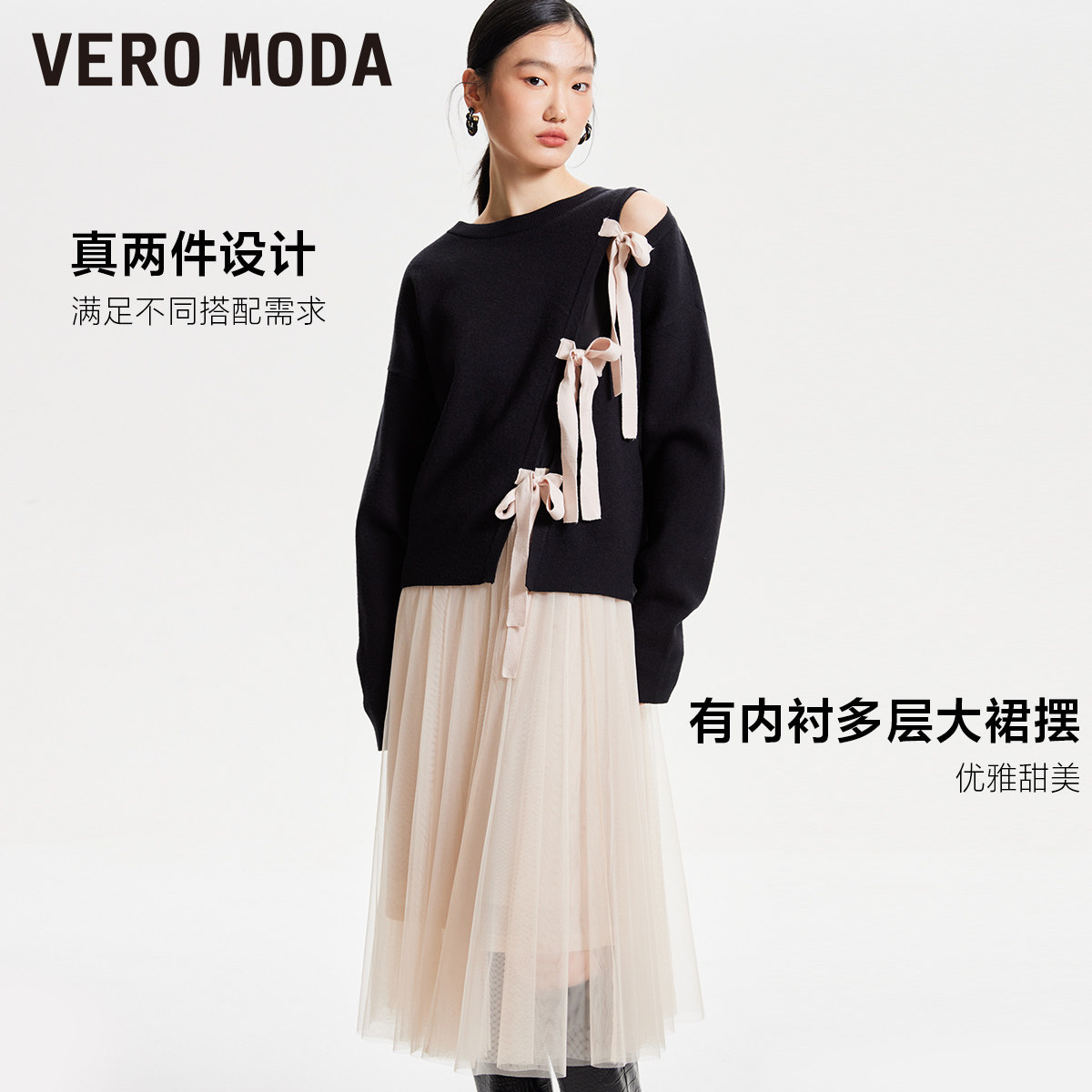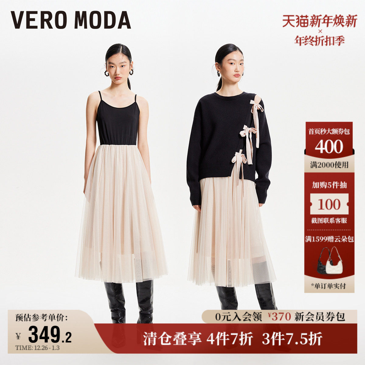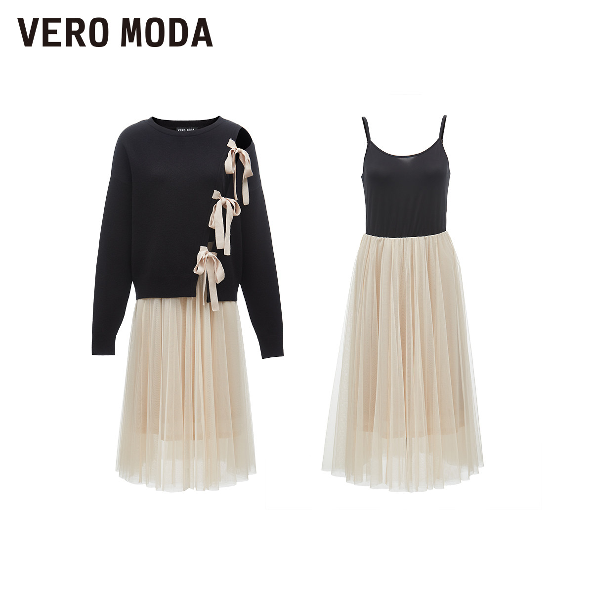 Vero Moda奥莱连衣裙针织衫毛衣秋冬真两件套甜美吊带仙女纱裙子