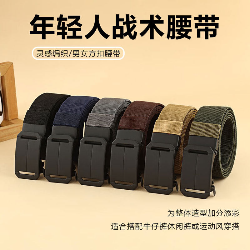 对插扣弹力皮带男自动扣时尚百搭潮流男士腰带户外尼龙帆布裤腰带