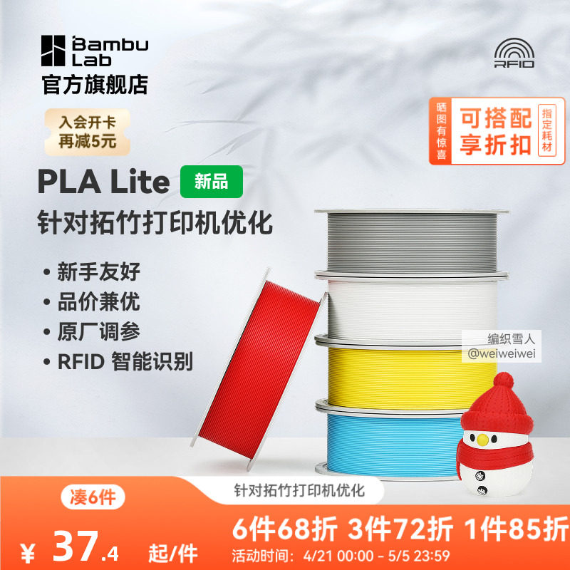 拓竹PLA Lite入门 3D打印耗材 高性价比新手友好 易打印哑光隐纹 RFID智能参数识别