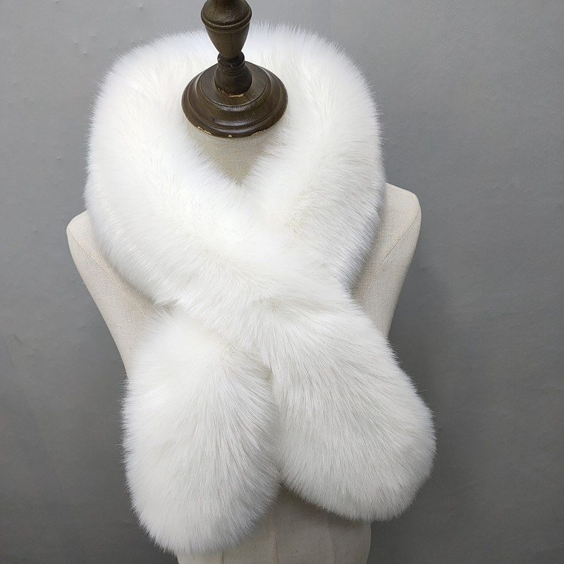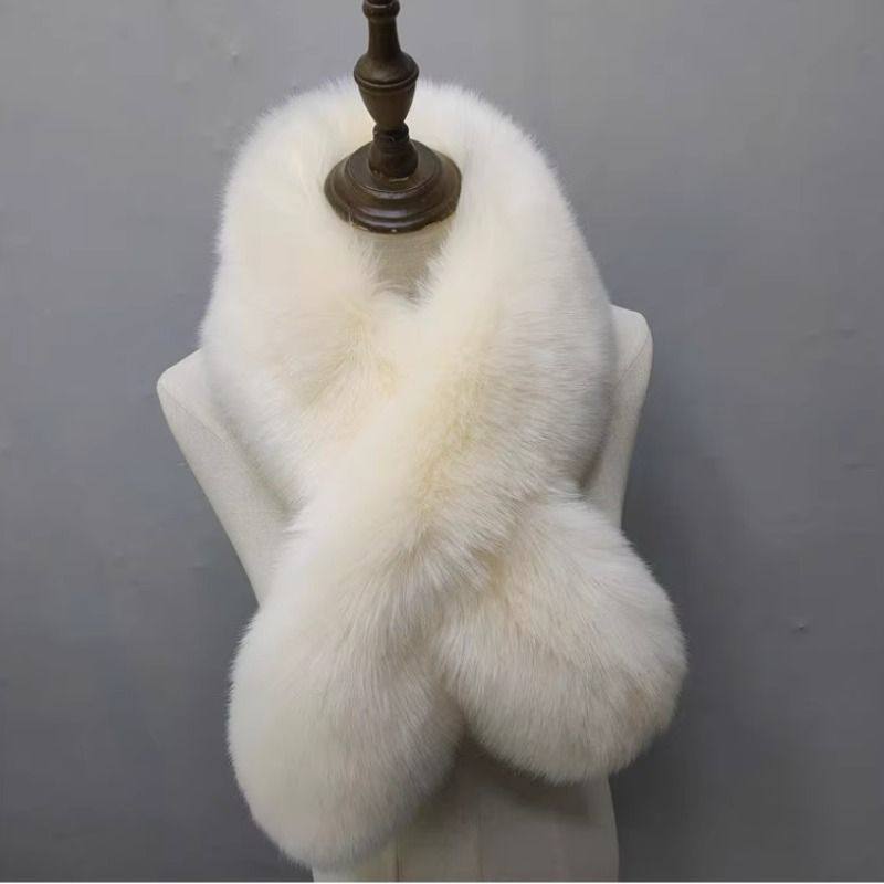 秋冬保暖加厚仿狐狸獭兔毛绒皮草围巾潮大围脖女士披肩毛领子白色