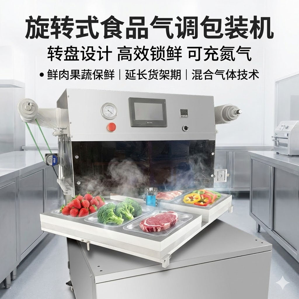 全自动转盘式蔬果气调包装机 盒装熟食真空封口机 鲜肉保鲜包装机
