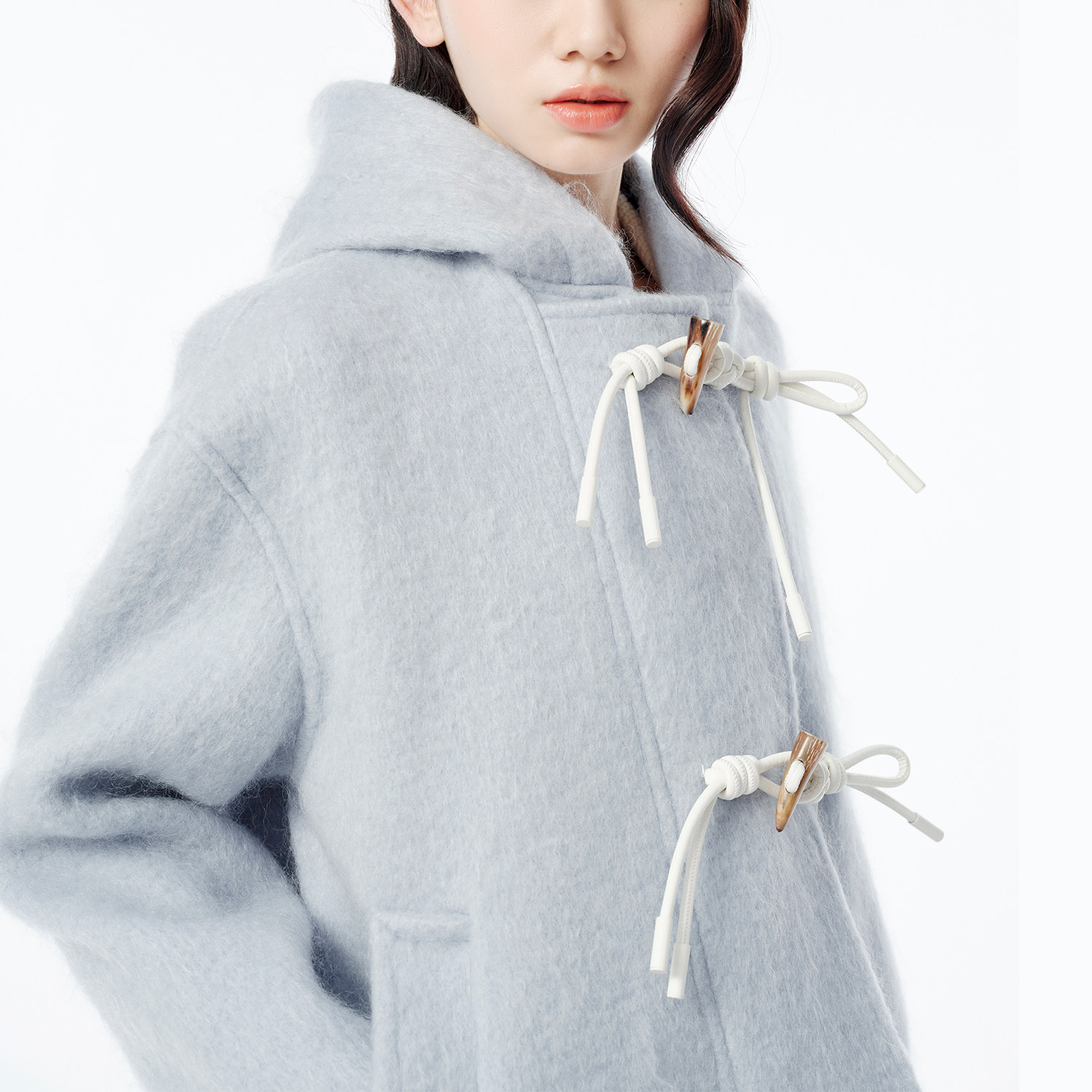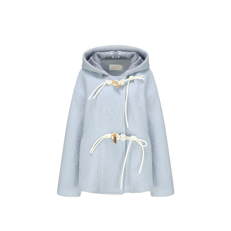 XIAOLI筱李 秋冬设计师款长毛呢牛角扣大衣外套 雾霾蓝/白色