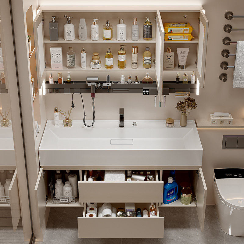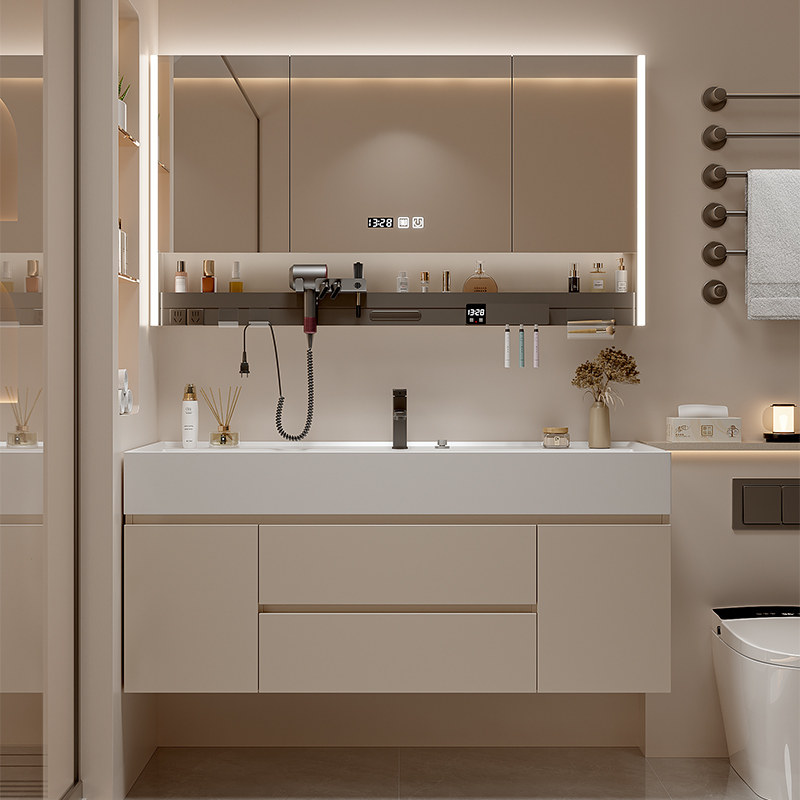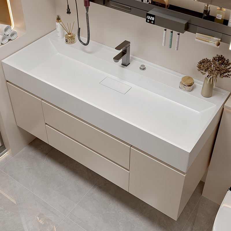 新奶油风格浴室柜组合微晶石集成盆大尺寸浴室水槽洗手盆
