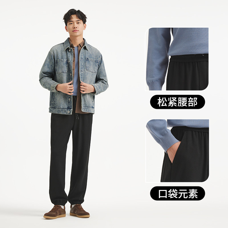 热风2025年秋季新款男士肌理休闲卫裤基础百搭束脚裤修饰腿型