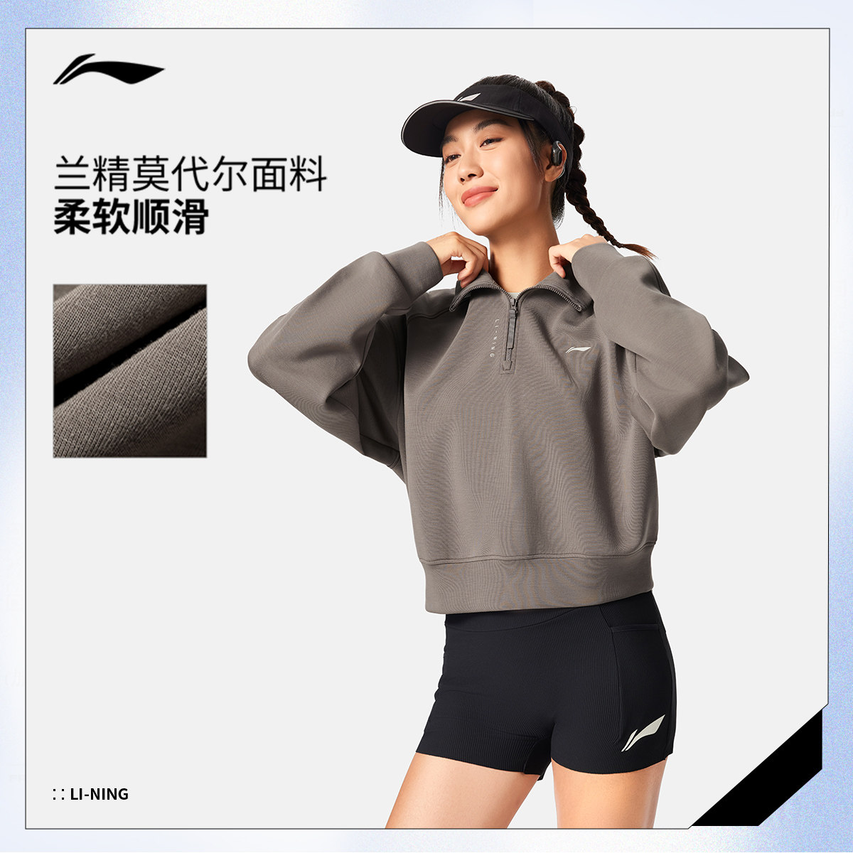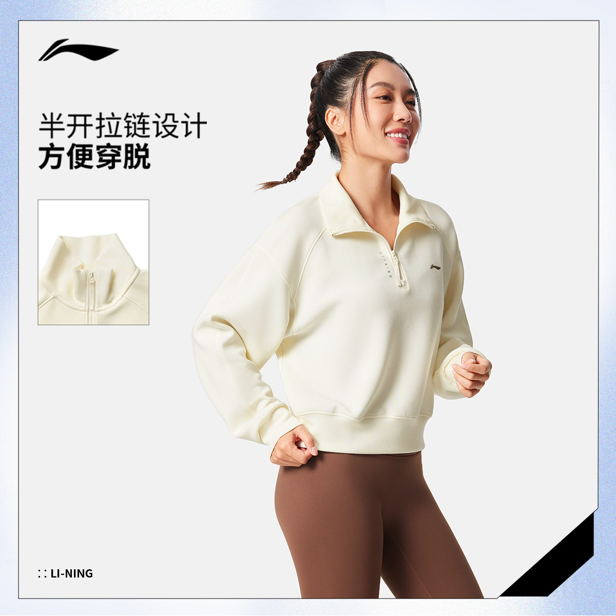 李宁卫衣女士官方新款健身系列长袖立领女装冬季上衣针织运动服