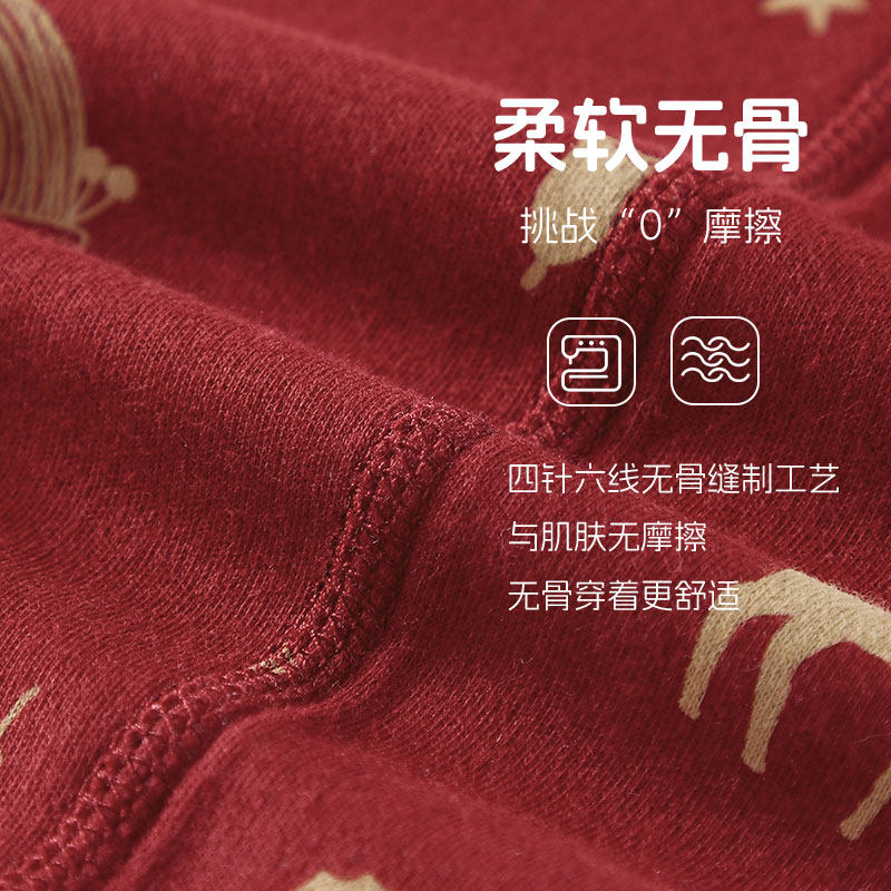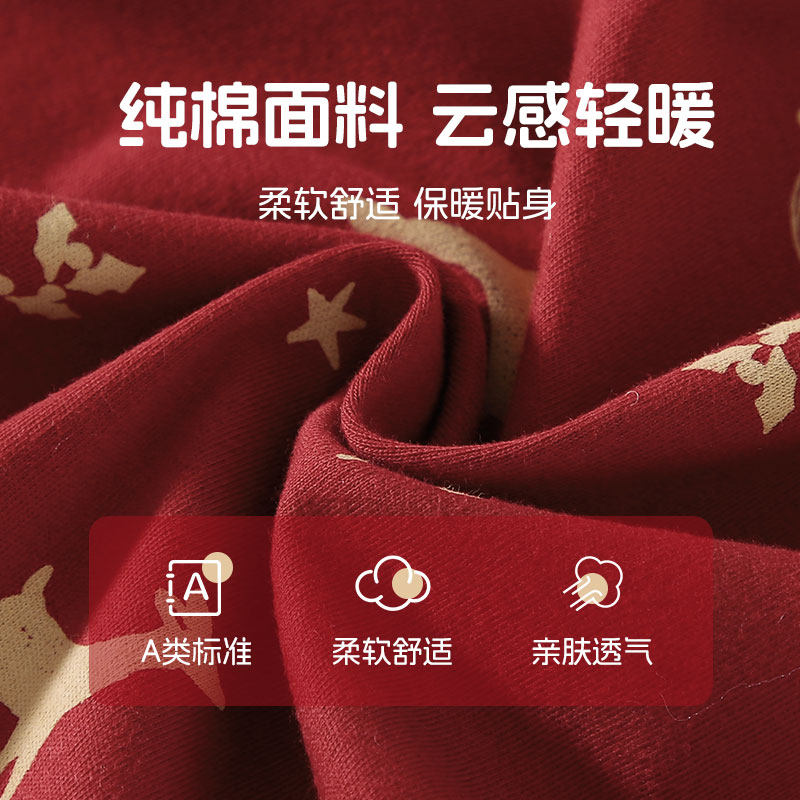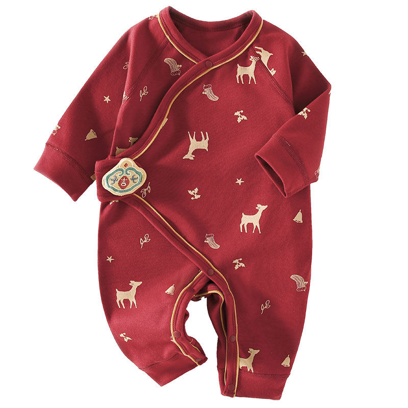 婧麒纯棉长袖婴儿连体衣红色斜襟柔软舒适婴幼儿四季款护肚爬爬服