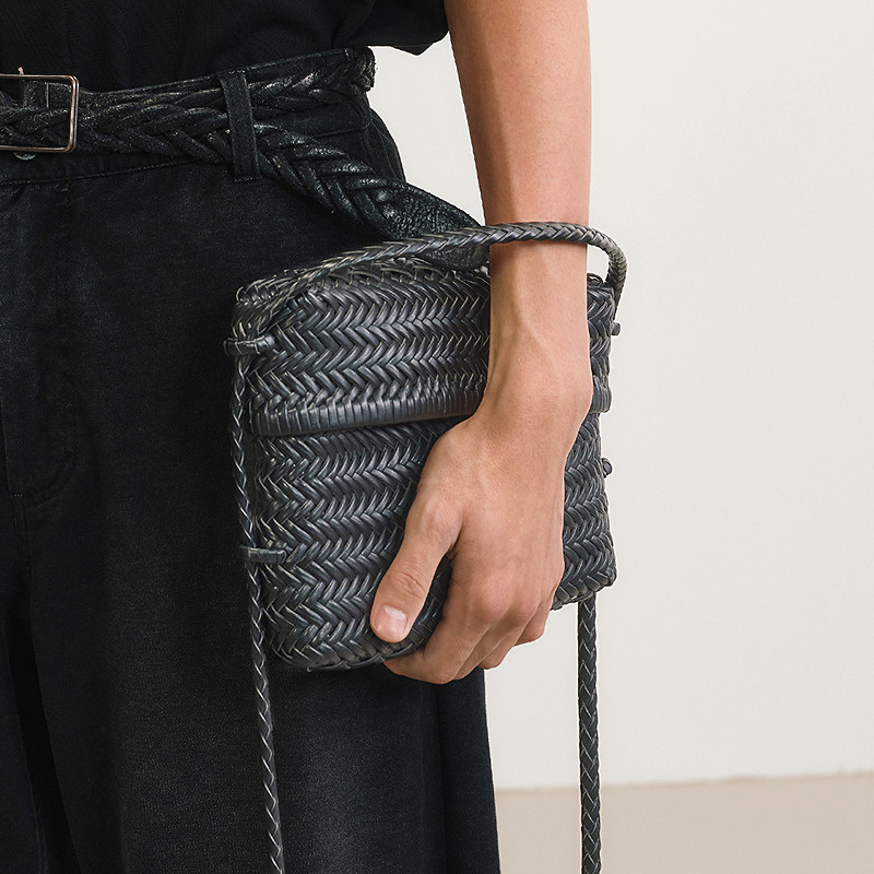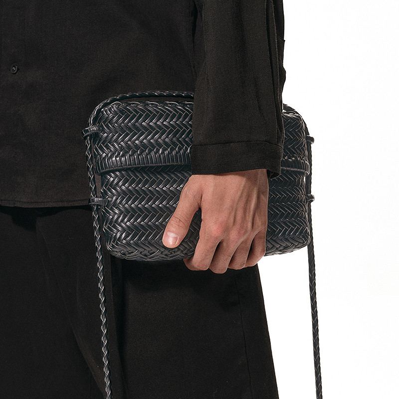 速写男装春秋新款男士包单肩包编织简约日常时尚潮休闲通勤