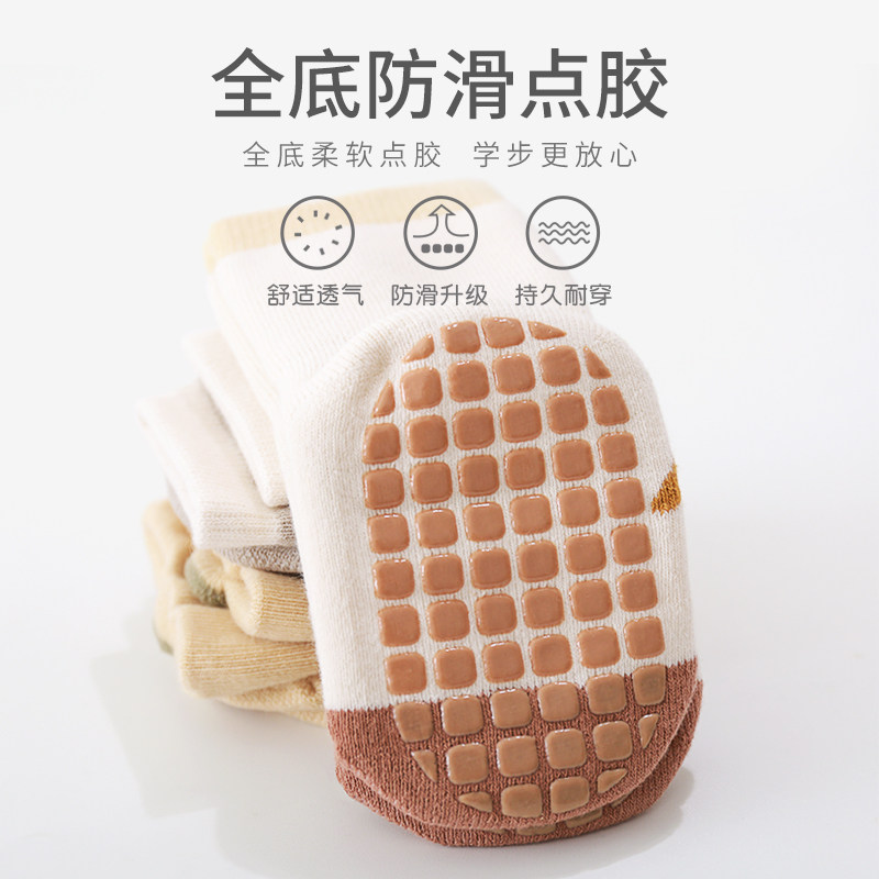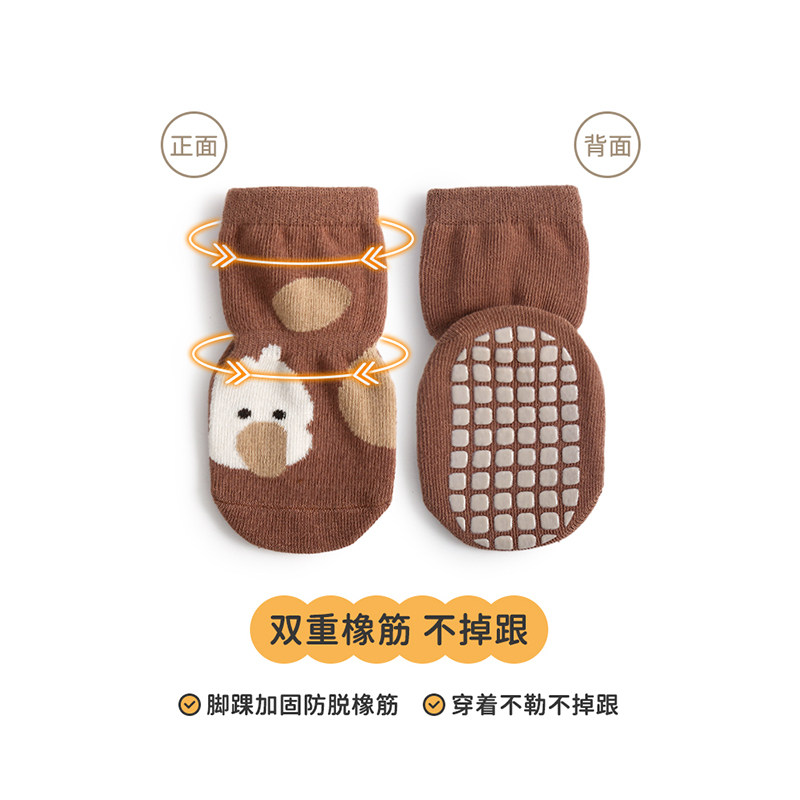 婴儿童地板袜子纯棉宝宝室内防滑男女幼儿隔凉学步袜中筒春秋毛圈