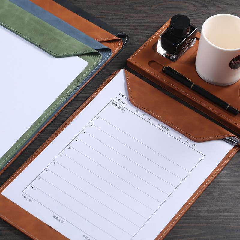 皮质会议垫板夹a4商务会议夹板垫高端商务酒店便签夹水杯托套装签约文件夹板学生写字垫板开单手写夹定制LOGO