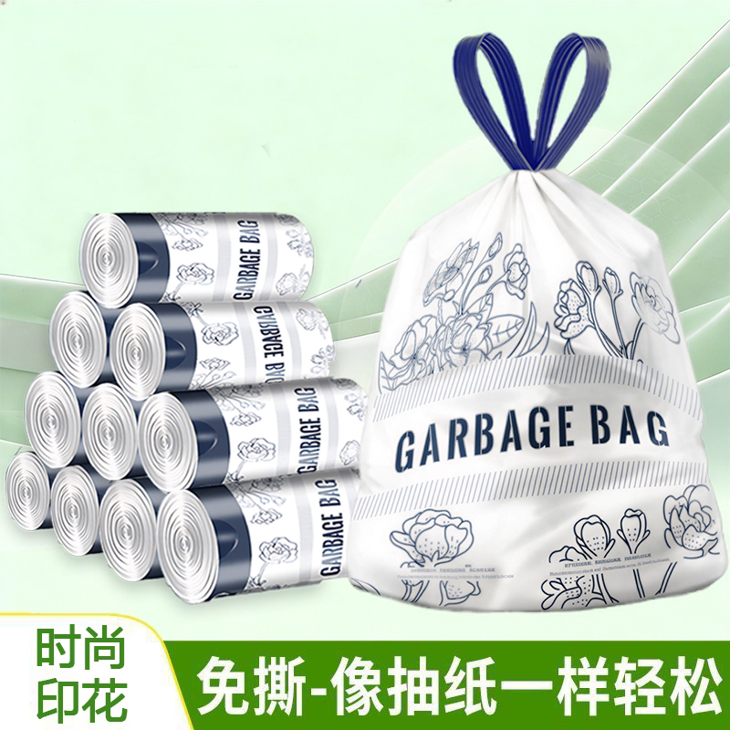 青崎可降解拉抽绳垃圾袋家用加厚手提式厨房环保免撕自动收口大号