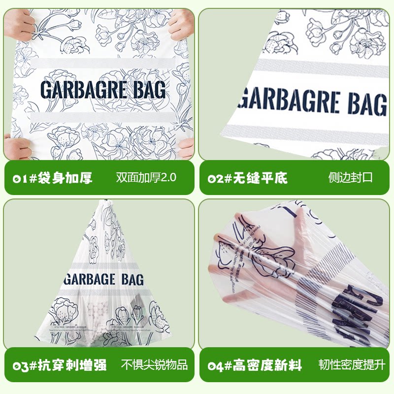 利得免撕印花抽绳垃圾袋45*50cm馥郁花款家用加厚手提