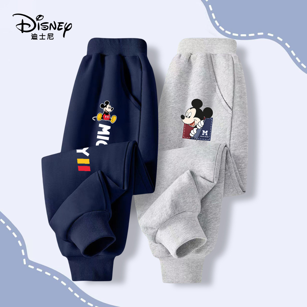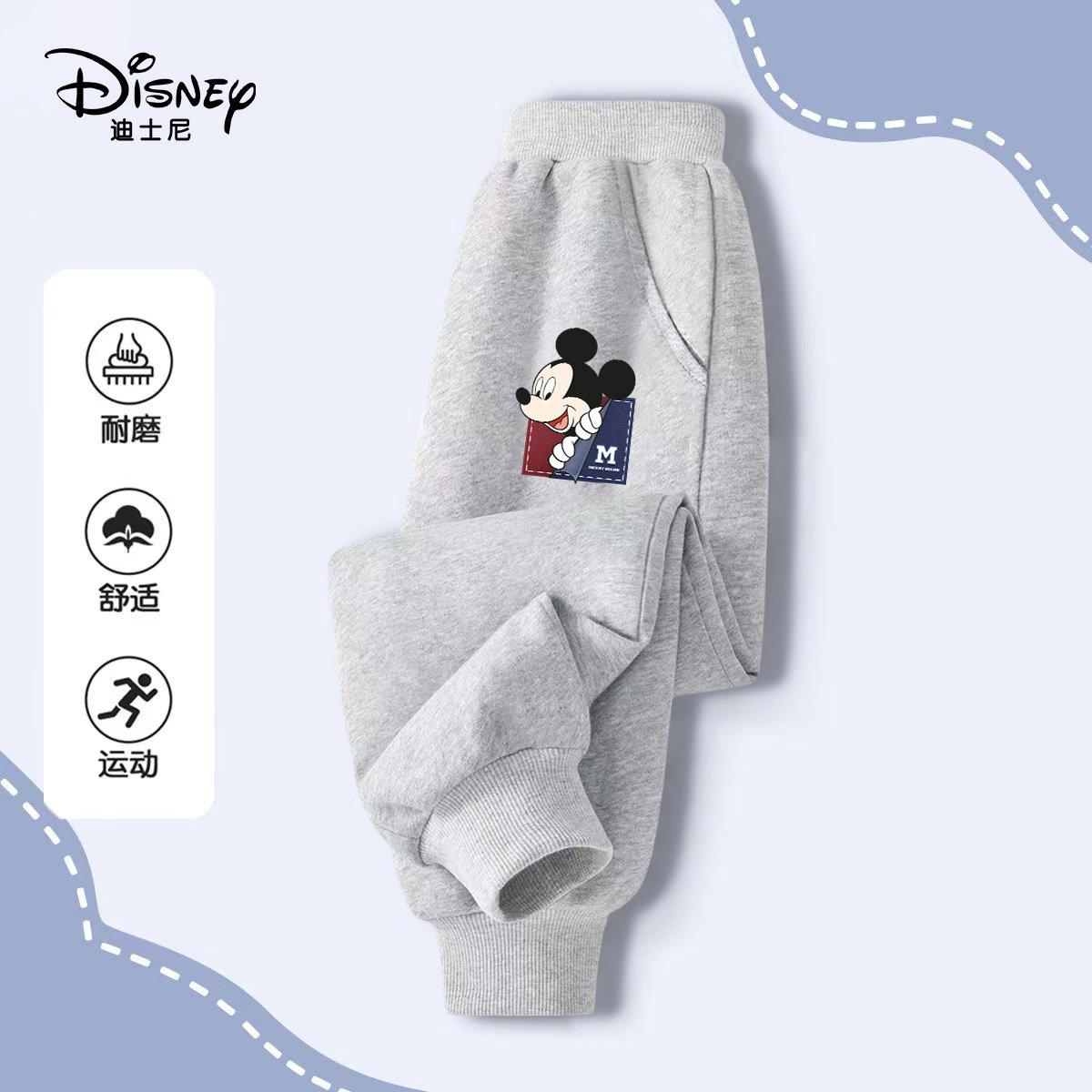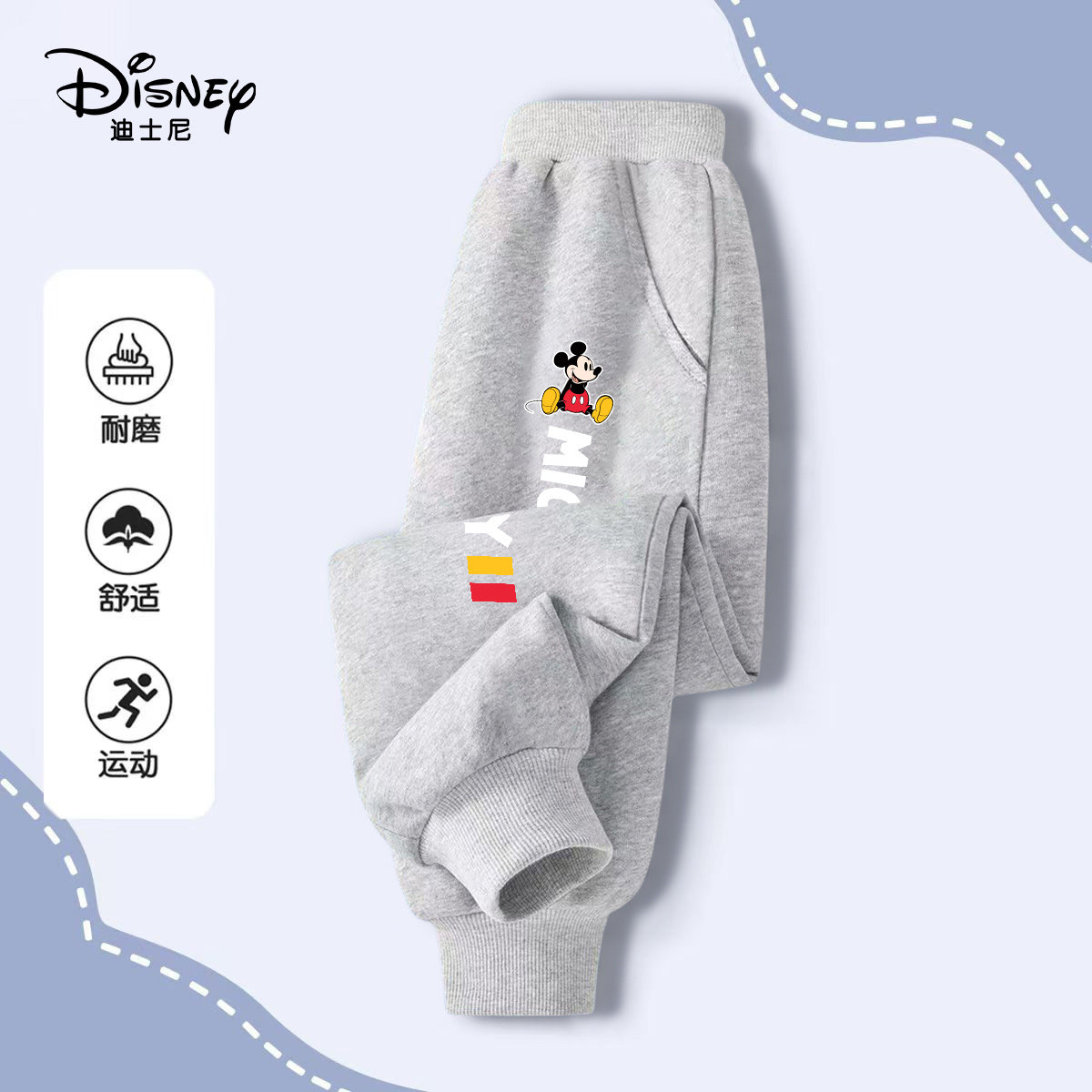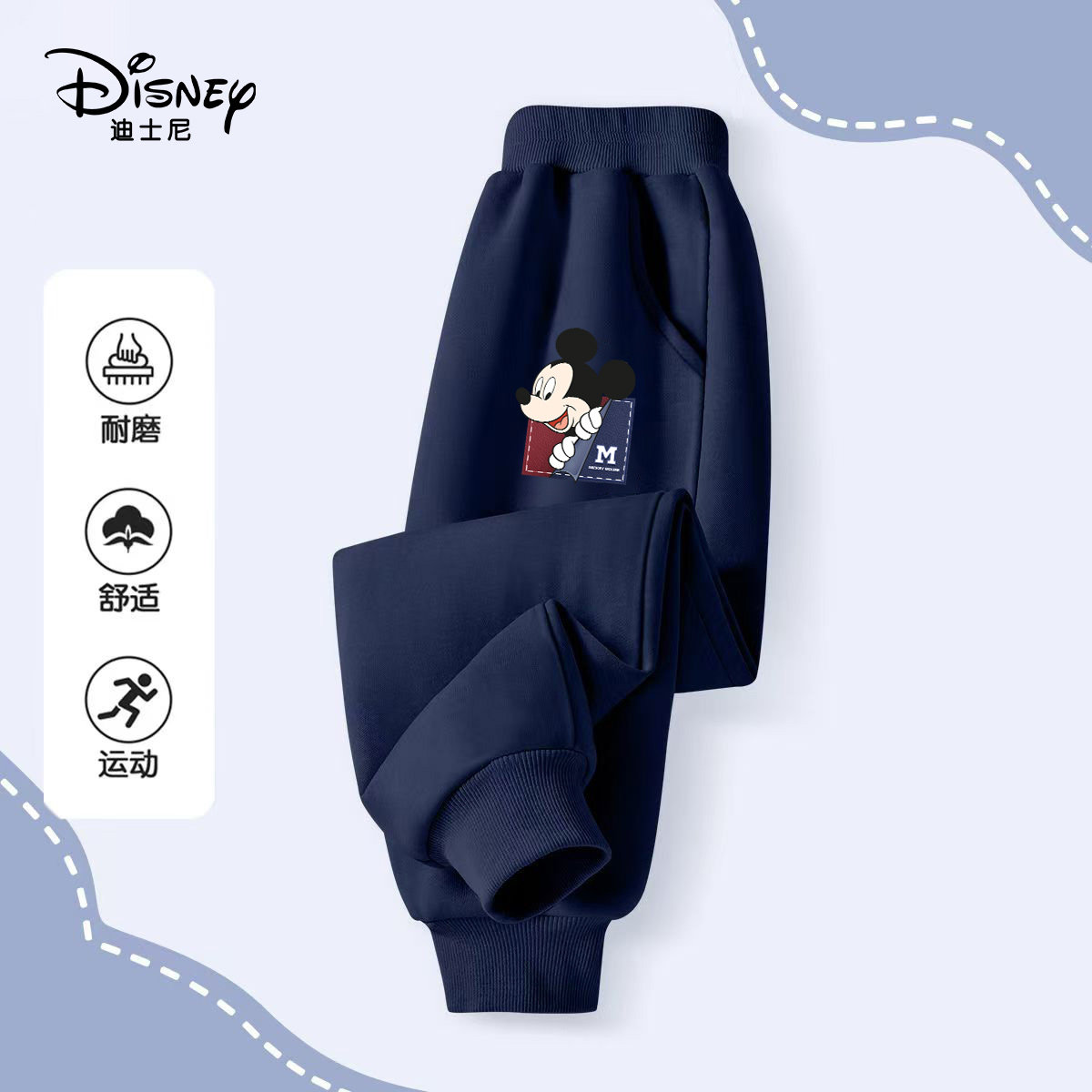 迪士尼男童裤子春秋款男孩百搭卫裤女童可爱长裤女宝外裤校园童装