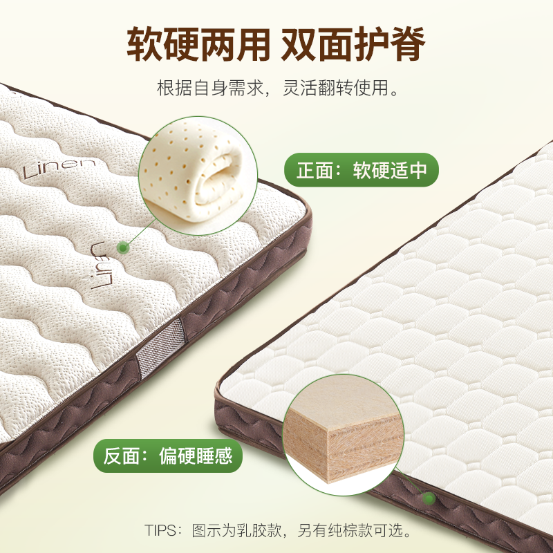 榻榻米床垫子专用定制硬薄家用乳胶儿童护脊天然S型精细黄麻180cm
