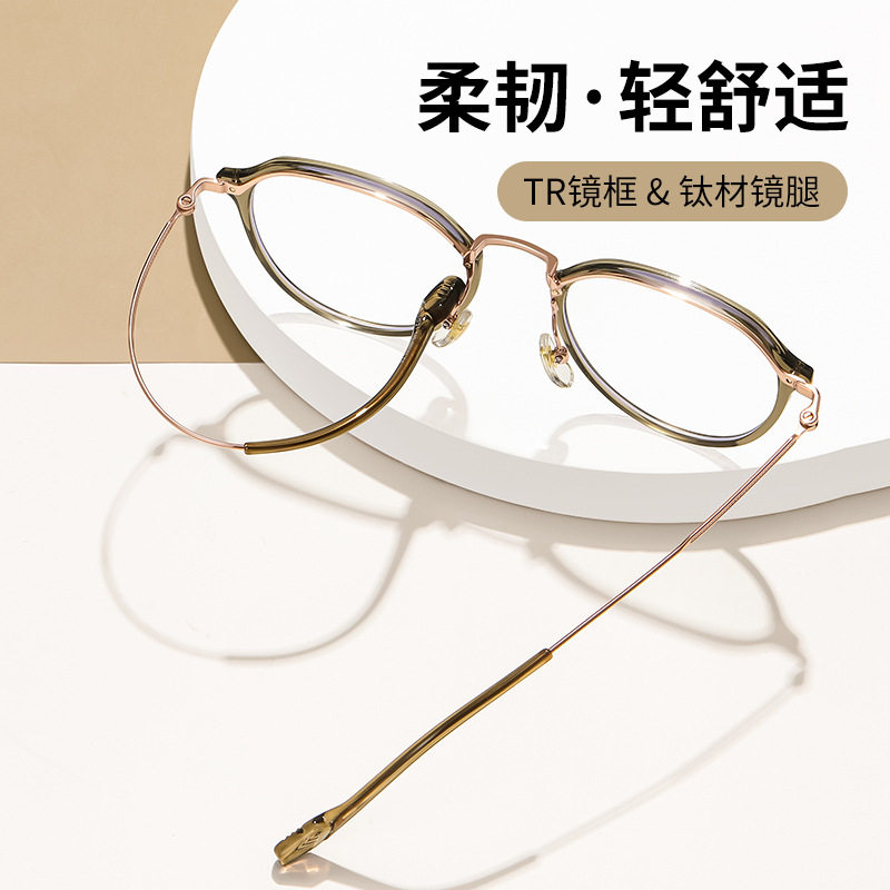 纯钛圆框近视眼镜蔡司防蓝光女可配度数素颜文艺细边眼镜框镜架男