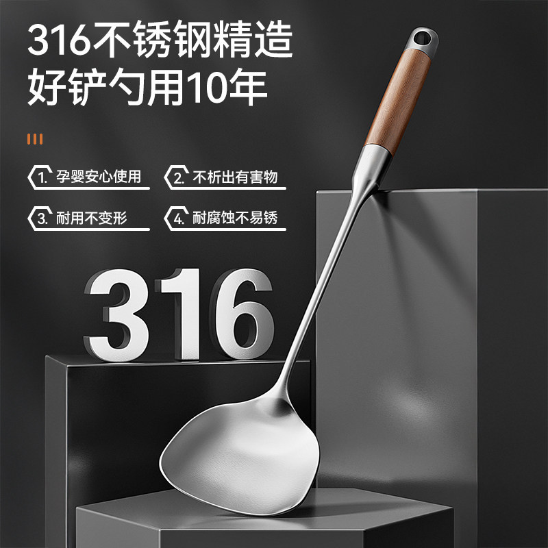 锅铲316不锈钢厨房家用加厚炒菜铲子汤勺漏勺厨具炒勺套装铁锅铲