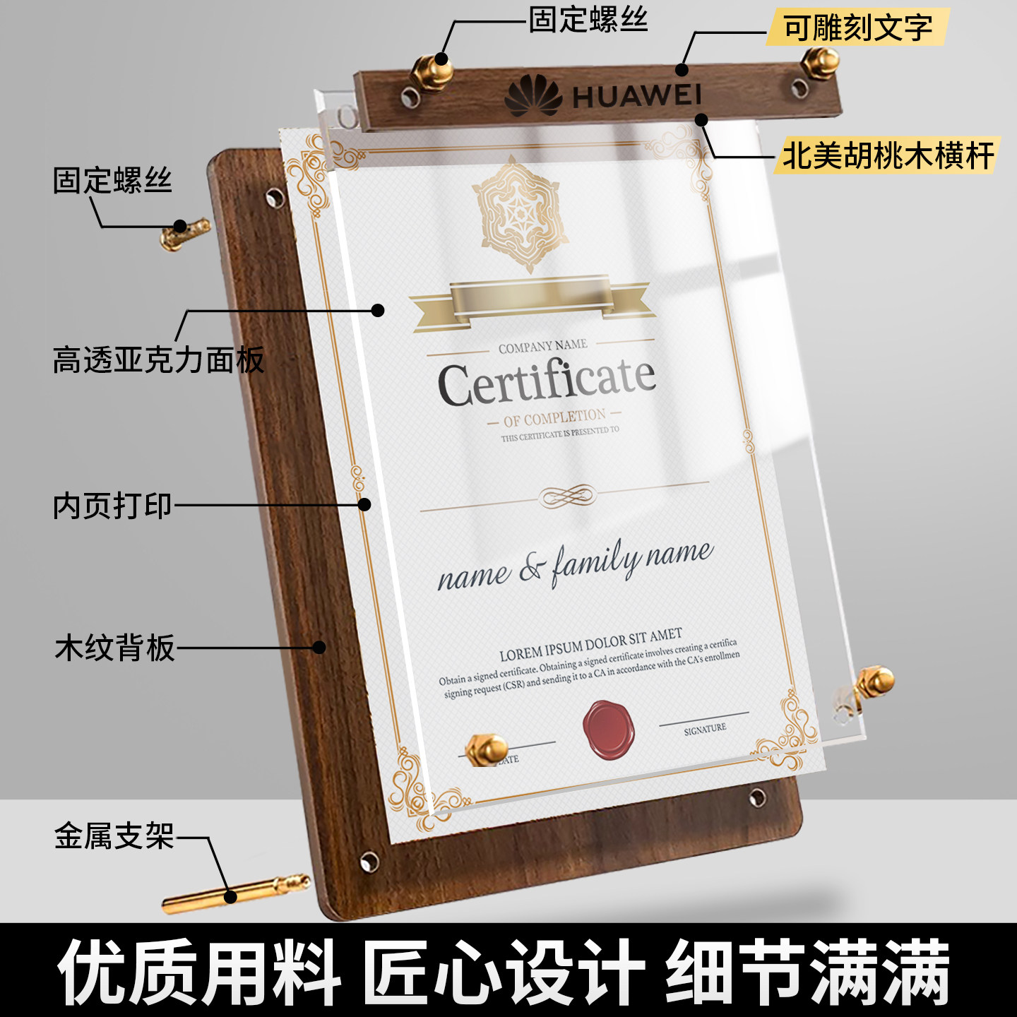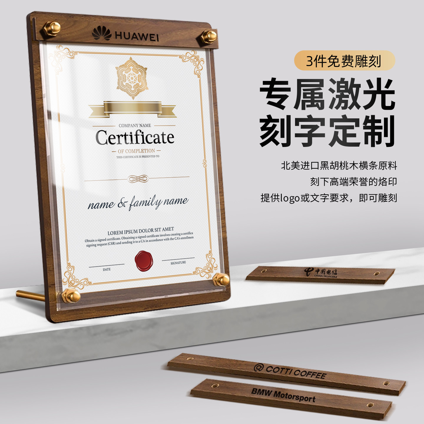 荣誉证书相框可刻字logo 免费内页 量大从优