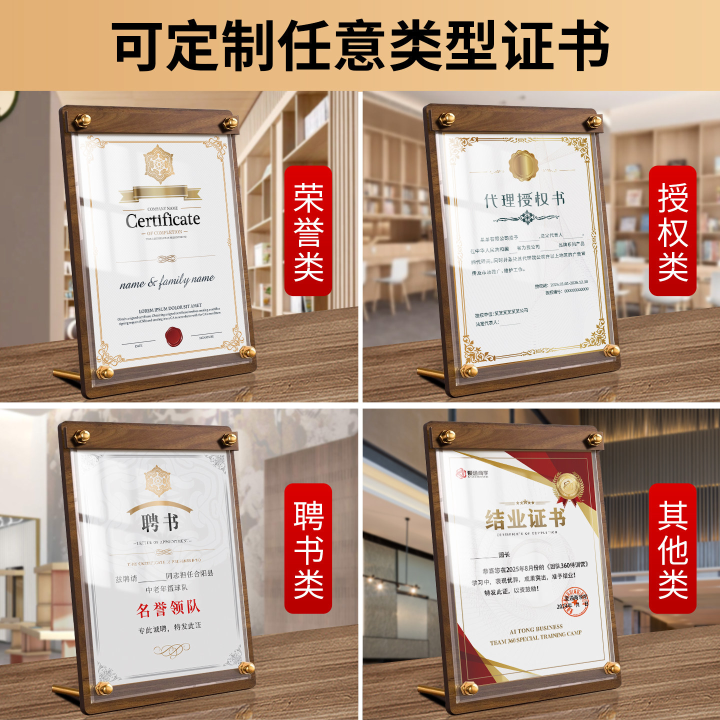 荣誉证书相框定制a4展示框企业刻字logo结业证件毕业专利授权书聘书外壳任命打印内页芯优秀员工获奖裱框摆台