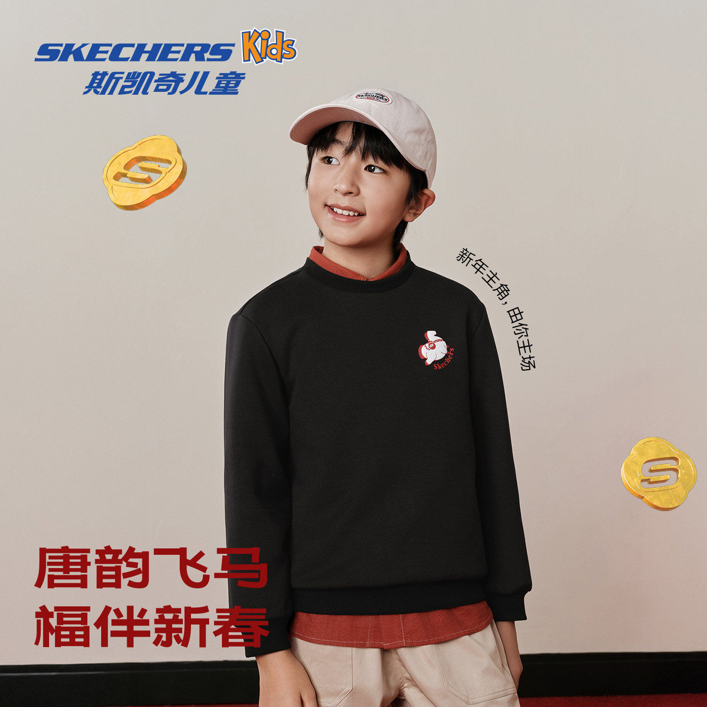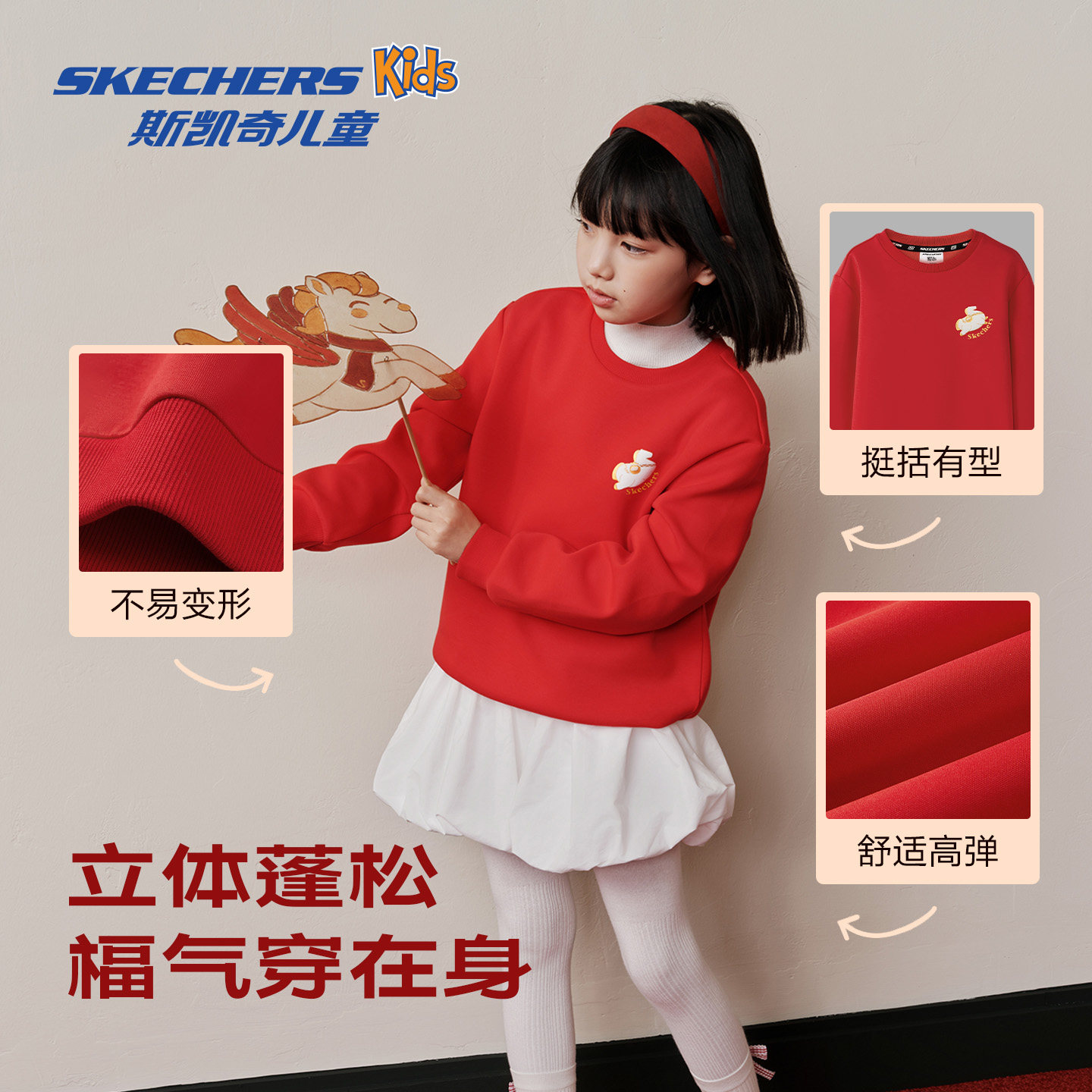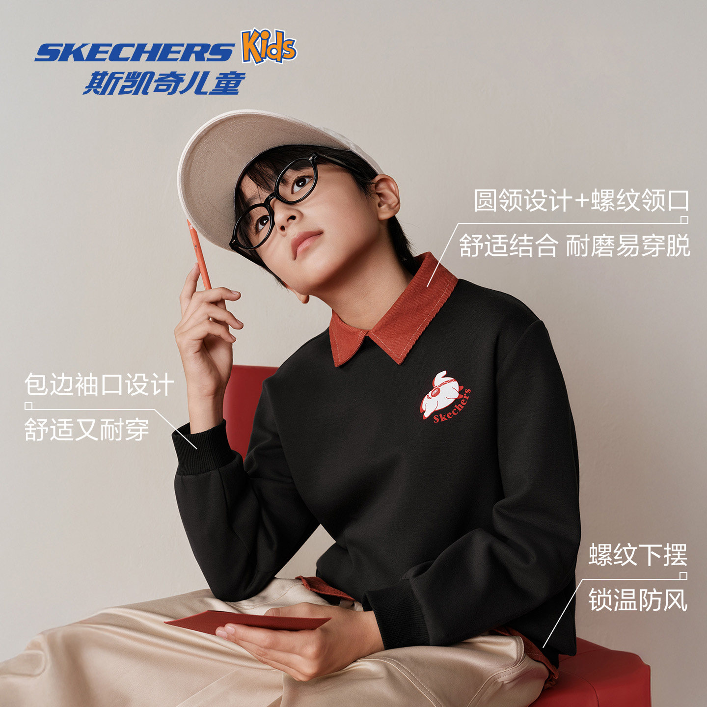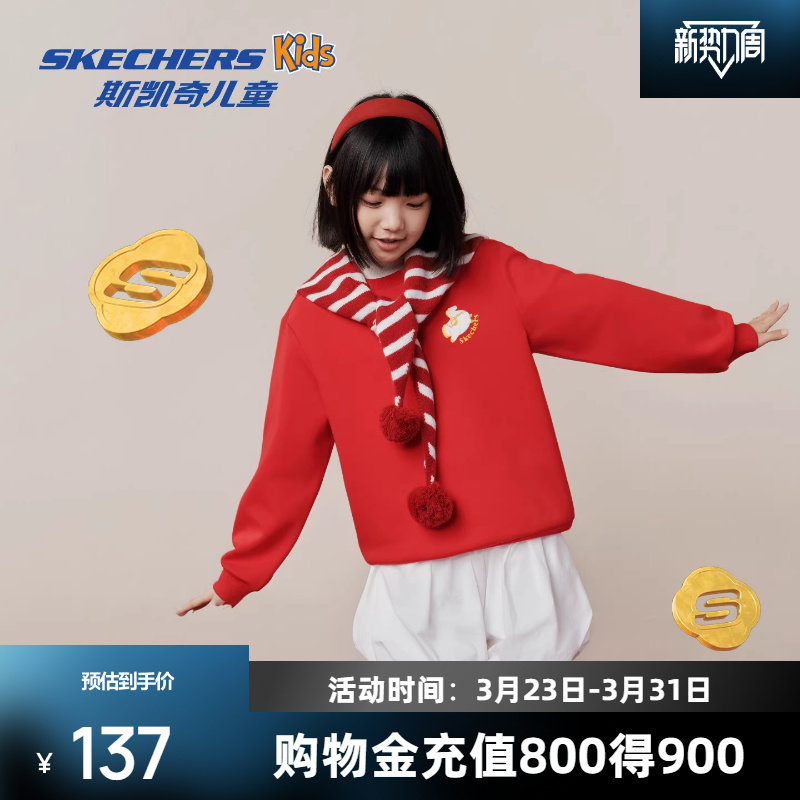 斯凯奇儿童卫衣2026春童装国潮中式舒适针织印花套头卫衣童装绒衫