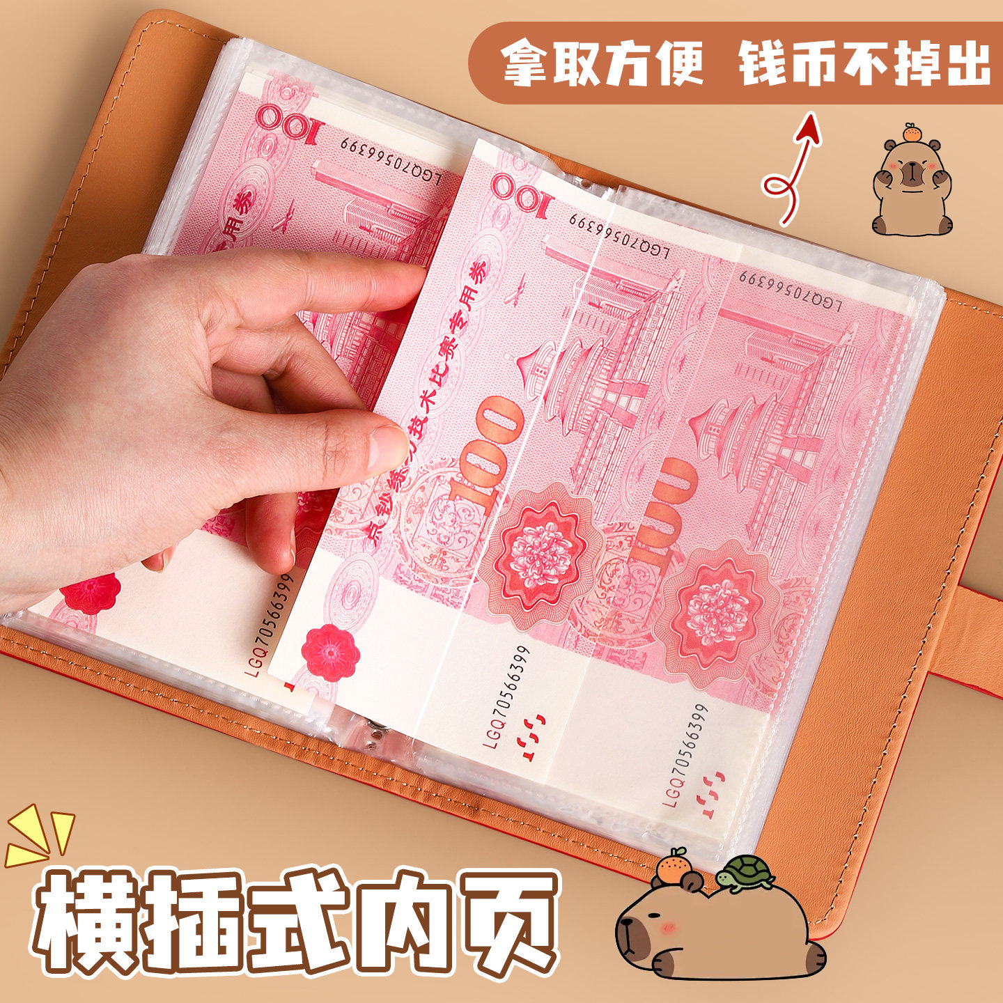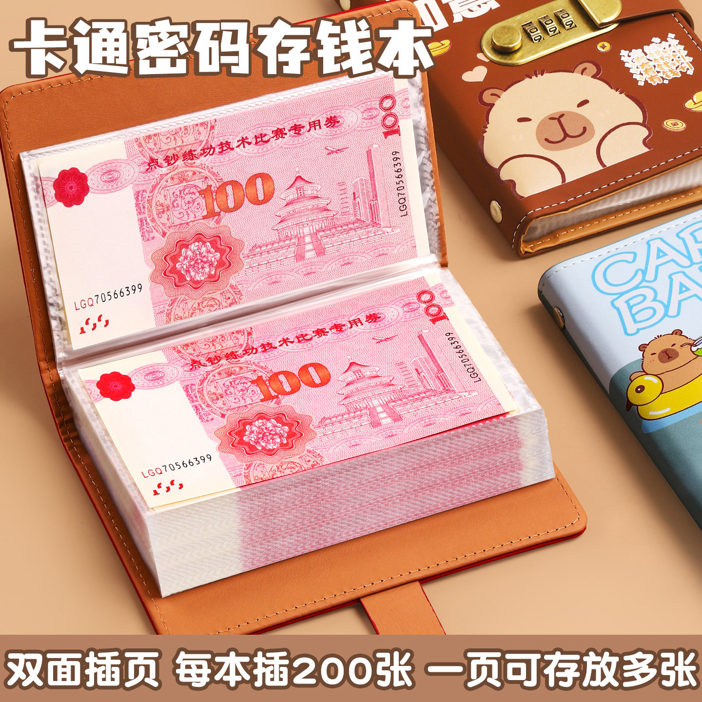 卡皮巴拉卡通存钱本压岁钱收纳包2025新款密码锁存钱夹钱册高颜值可爱可放只放现金大容量百元钞票收纳袋