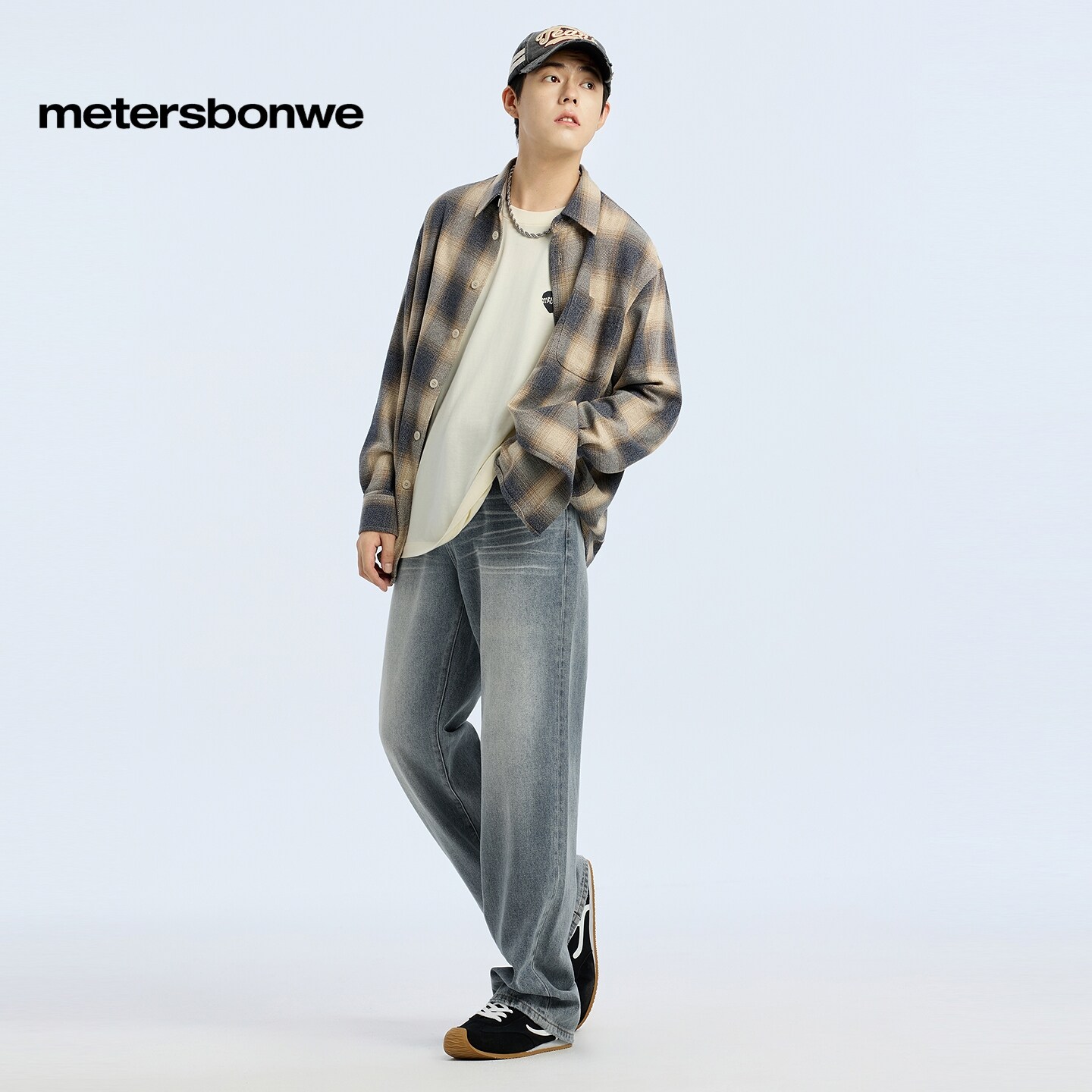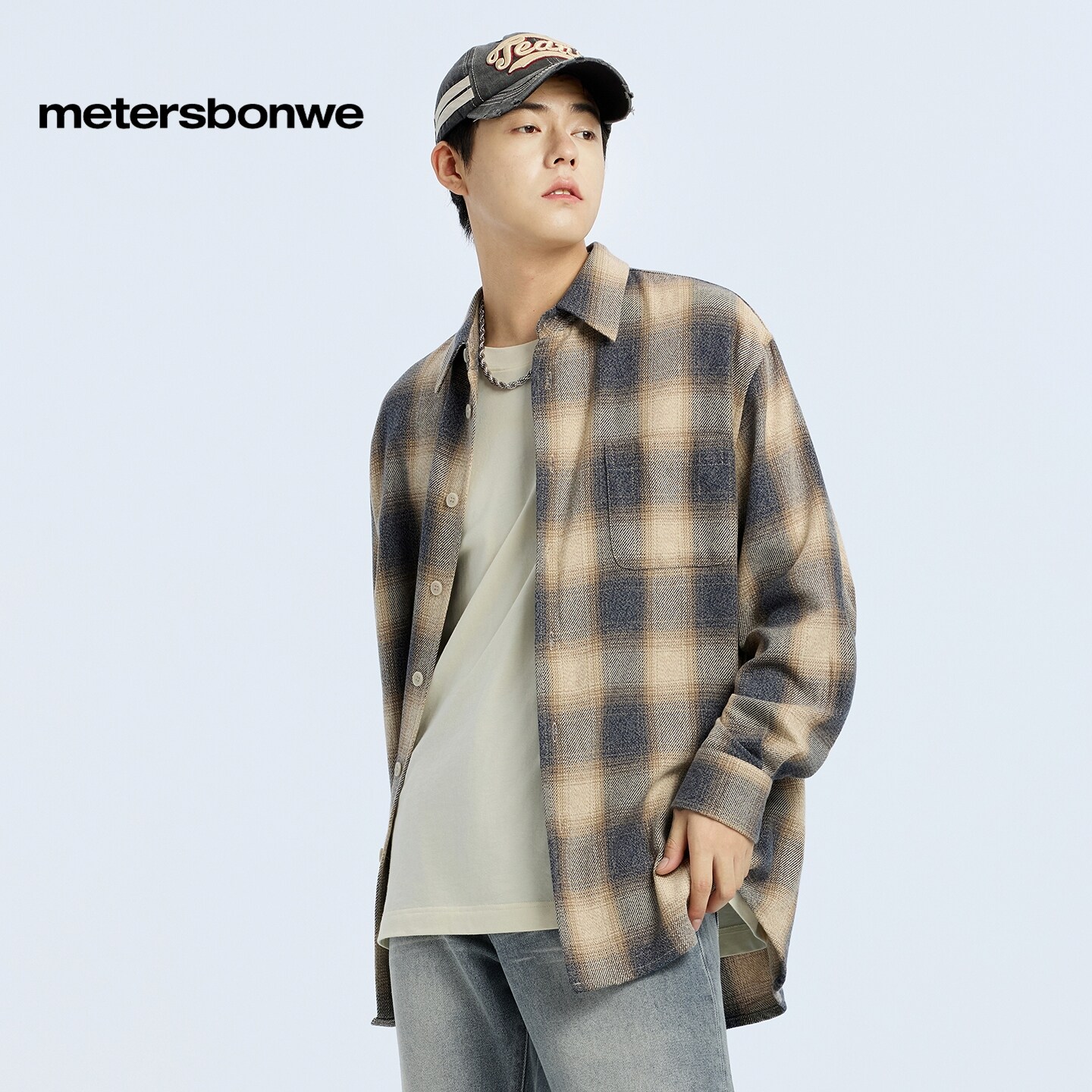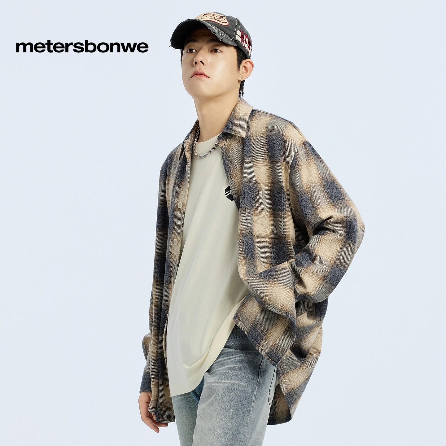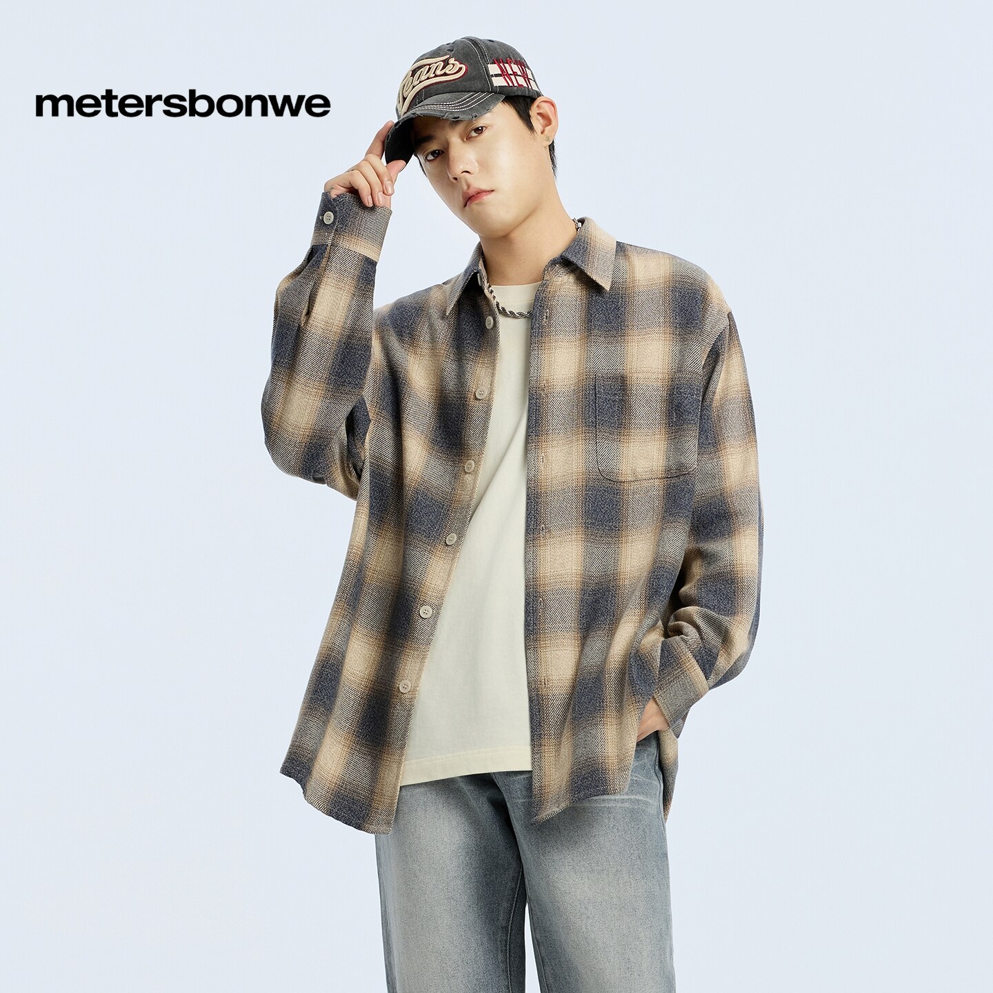[商场同款]美特斯邦威男年春新款舒适百搭通勤格舒适子长袖衬衫