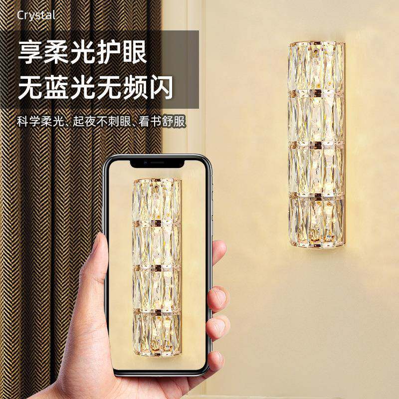 卧室床头灯水晶壁灯简约现代客厅背景墙欧式轻奢餐厅房间楼梯壁灯