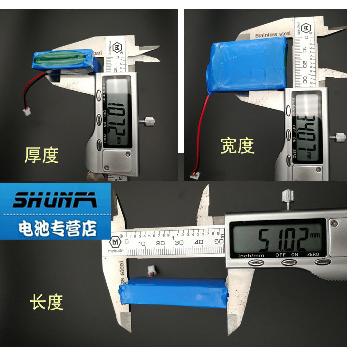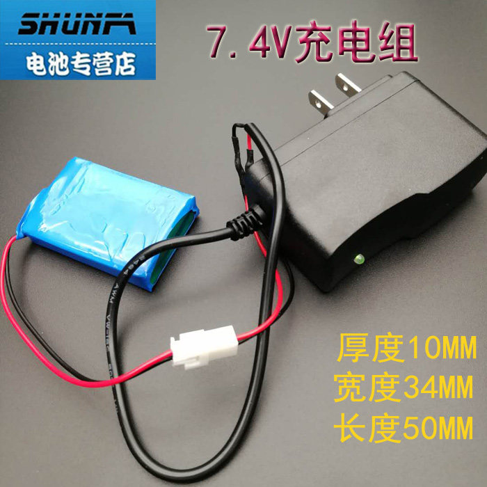 7.4V103450对讲机扩音器可充电电池带保护2.54插头充电器1100mAh