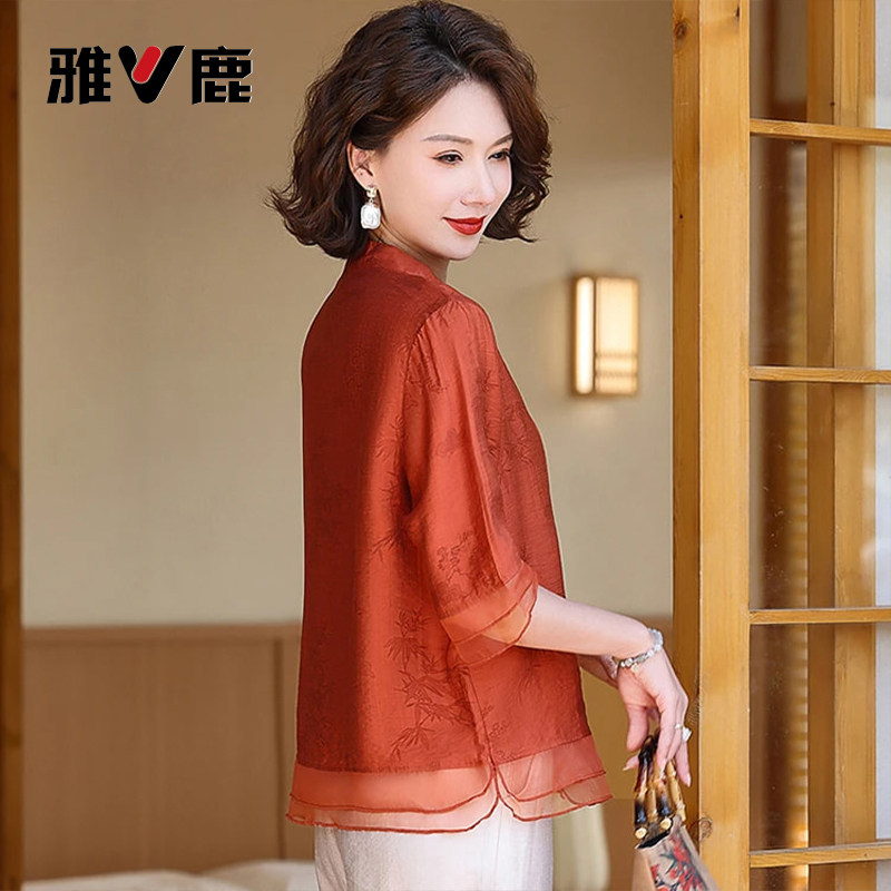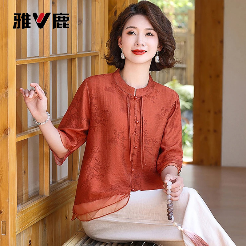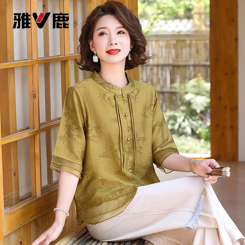 【雅鹿正品】2026夏季国风中老年妈妈女装新中式显瘦小衫套装衬衫