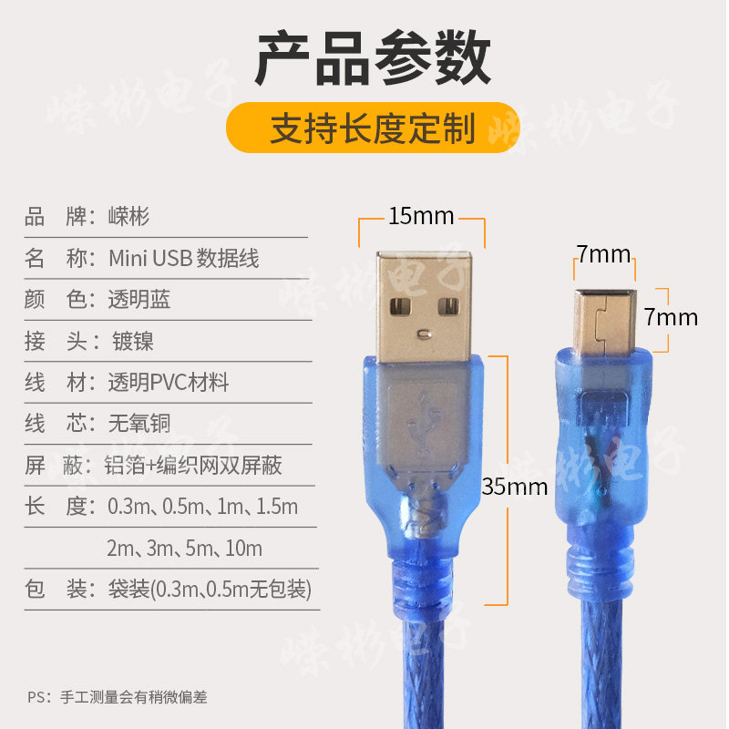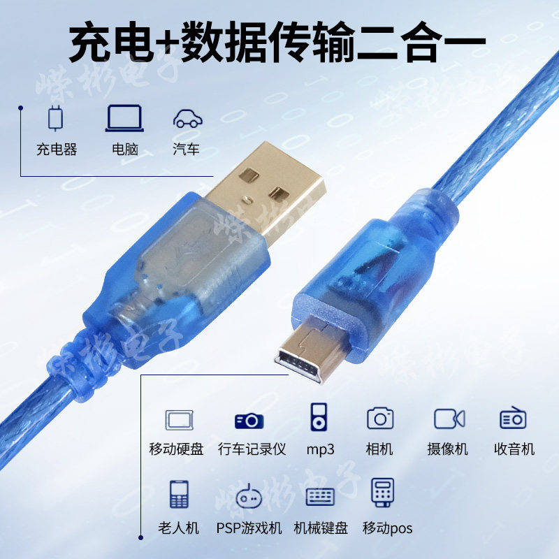 USB公转5P全铜对讲机充电线T口税控盘连接线2.0带磁环Mini数据线