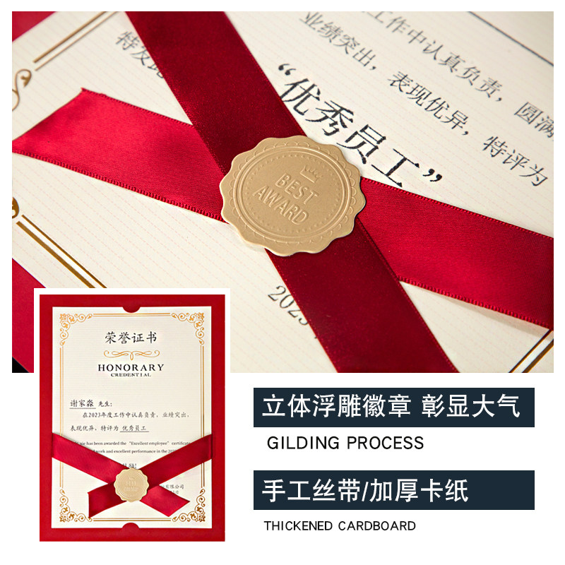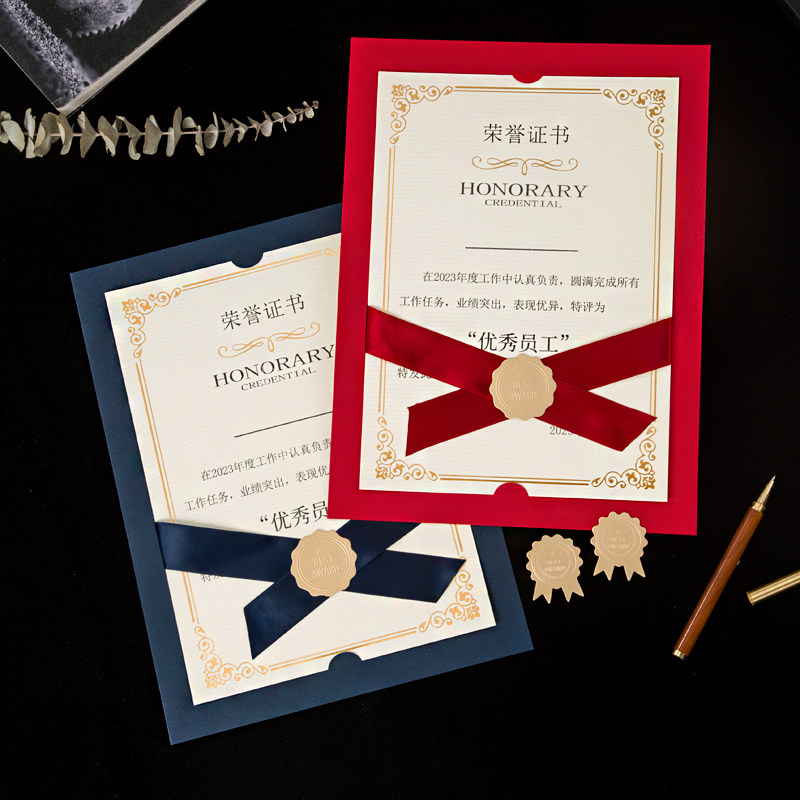 荣誉证书定制内芯A4内页打印外壳烫金横版结业毕业证书框企业设计