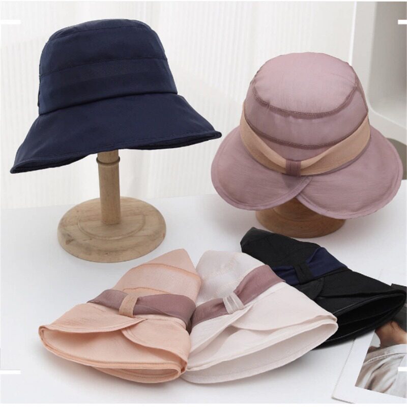 日系可折叠夏季条纹渔夫帽女新款长防晒帽子时尚盆帽大头围太阳帽