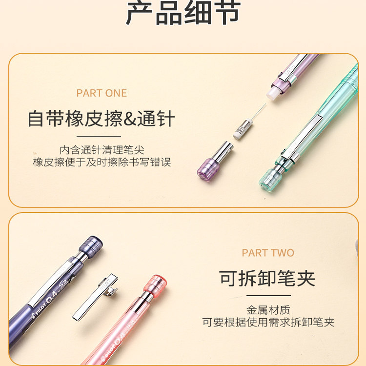 日本PILOT百乐HPS-B自动铅笔0.3/0.4 S3绘图自动铅笔小学生专用限量版高颜值进口自动铅笔芯不易断