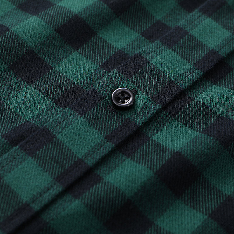 啄木鸟秋季新款男士长袖100%全纯棉磨毛格子衬衫 高级感休闲衬衣