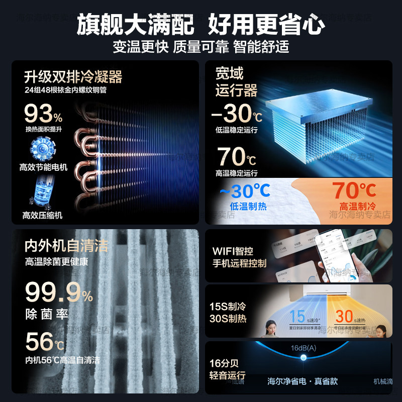 海尔空调套装一级能效家用立式3匹柜机净省电挂机1.5匹三室一厅E1