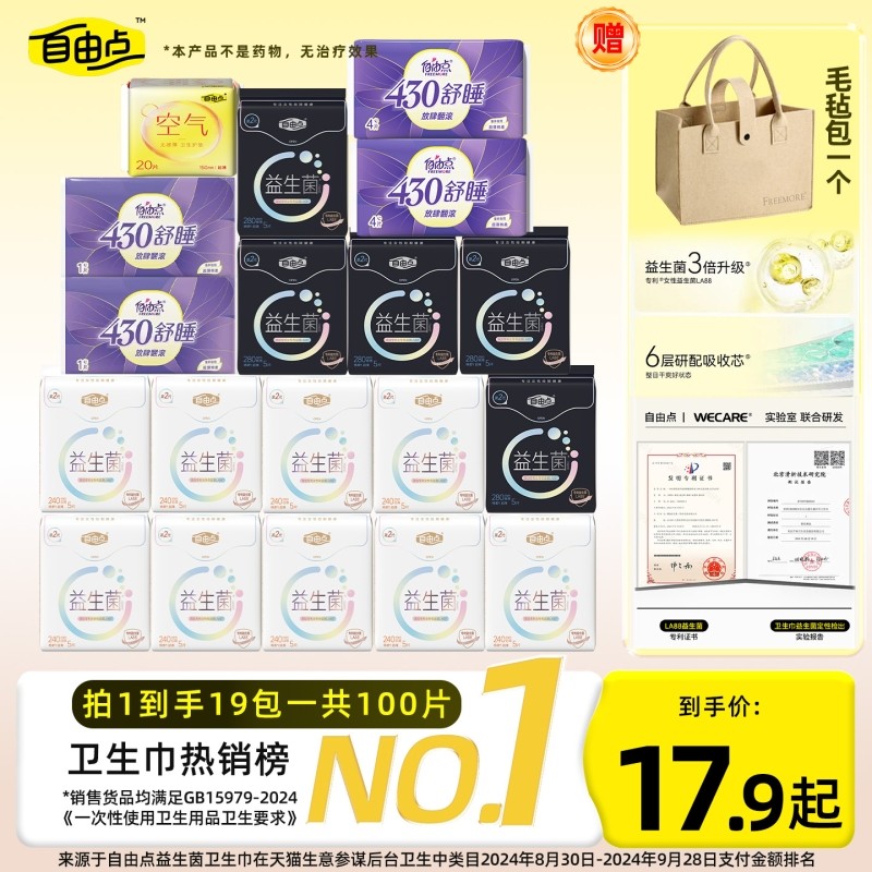 自由点益生菌卫生巾超薄防漏日用夜用组合装姨妈巾官方旗舰店正品