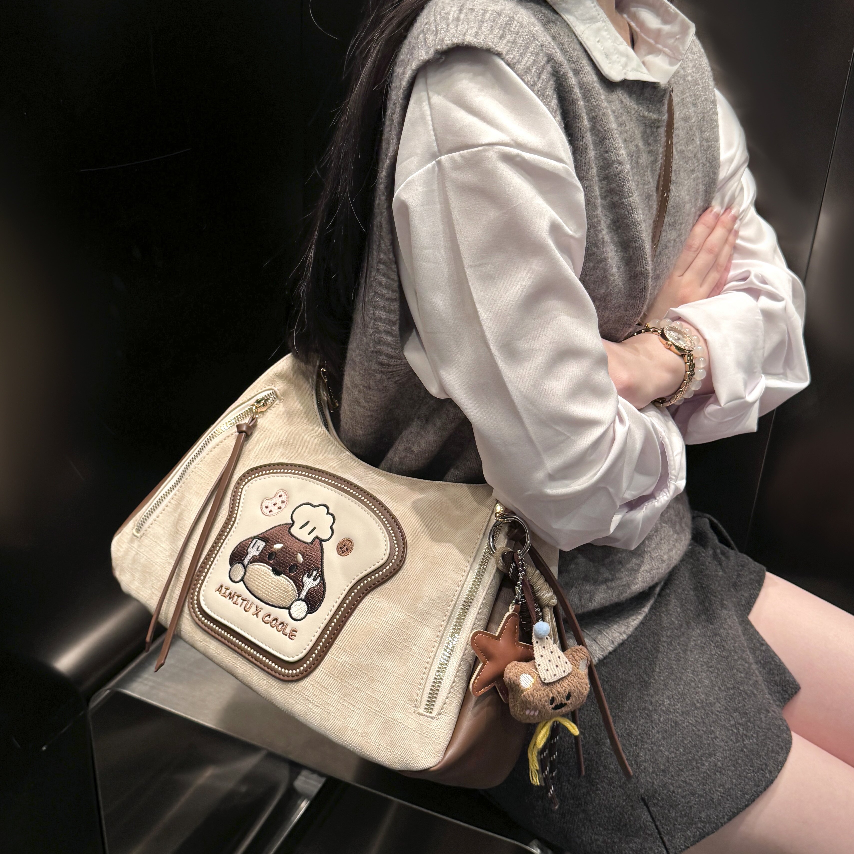 艾米兔女包2026新款通勤百搭休闲可爱印花小众时尚简约单肩托特包