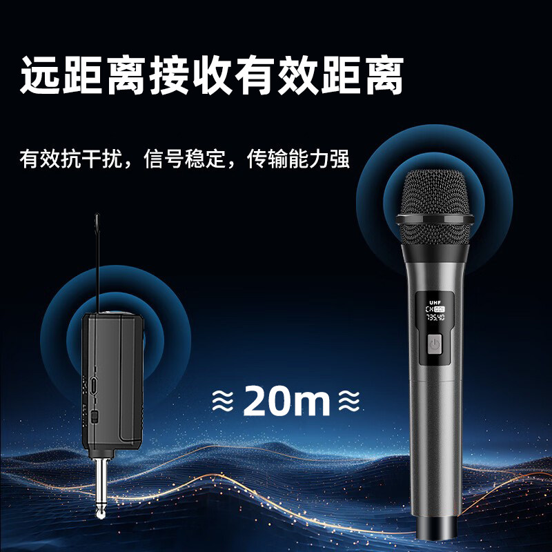 专业无线充电U段话筒功放麦克风K歌演出舞台一拖二户外KTV通用麦