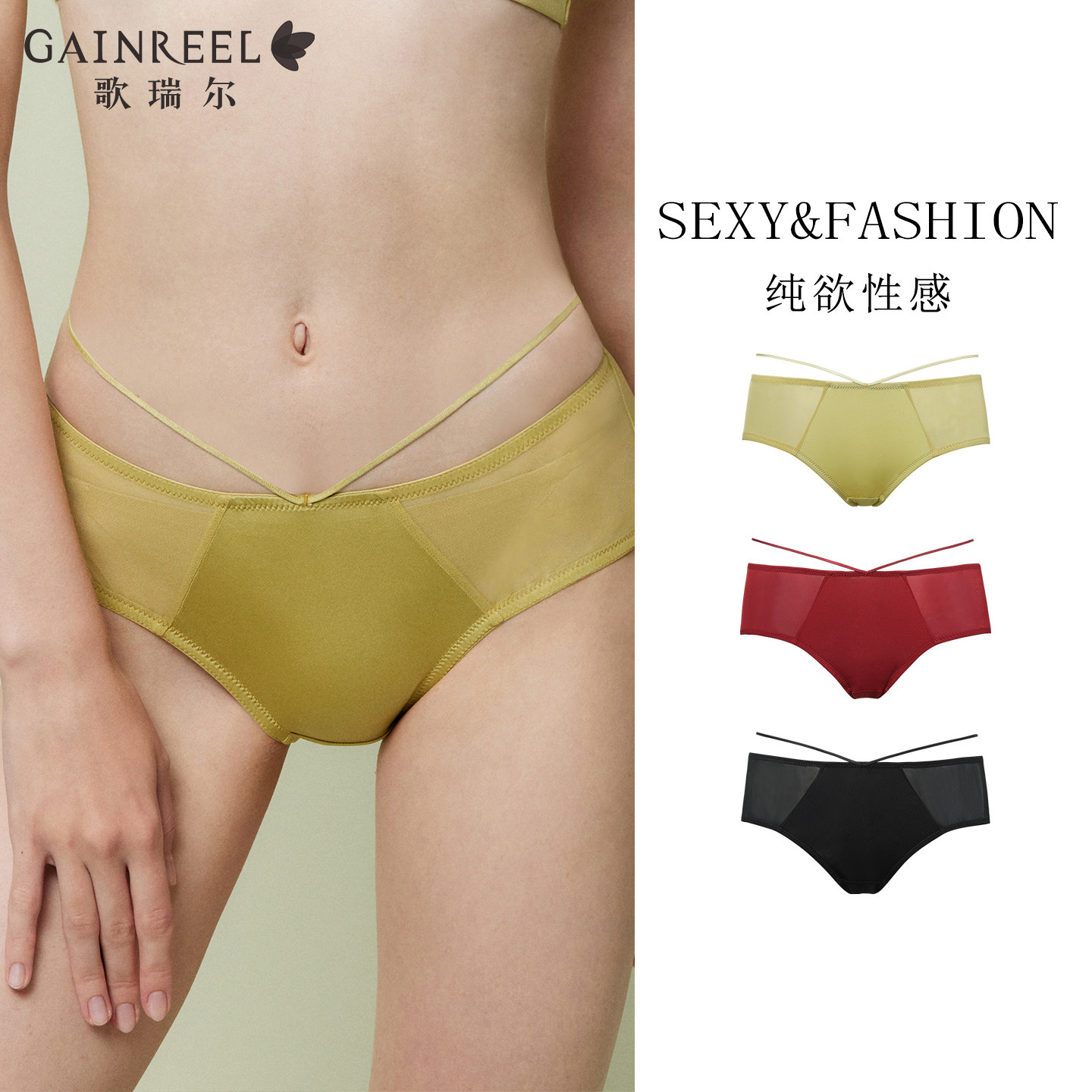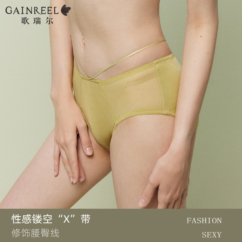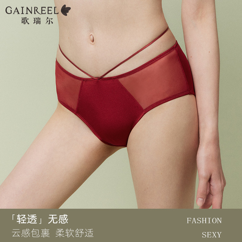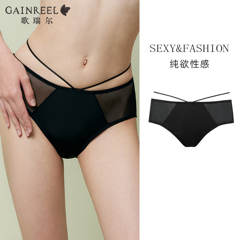 歌瑞尔性感纯欲内裤女柔软透气禁欲系中低腰薄纱平角裤底裤
