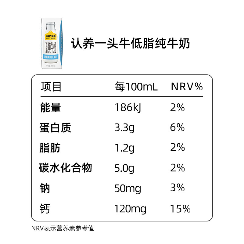 认养一头牛低脂纯牛奶200ml*10盒早餐营养牛奶12月产蛋白质常温