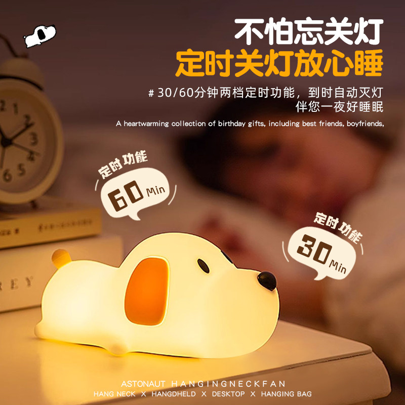 小狗灯硅胶小夜灯睡眠充电式婴儿喂奶定时灯儿童床头台灯护眼狗狗
