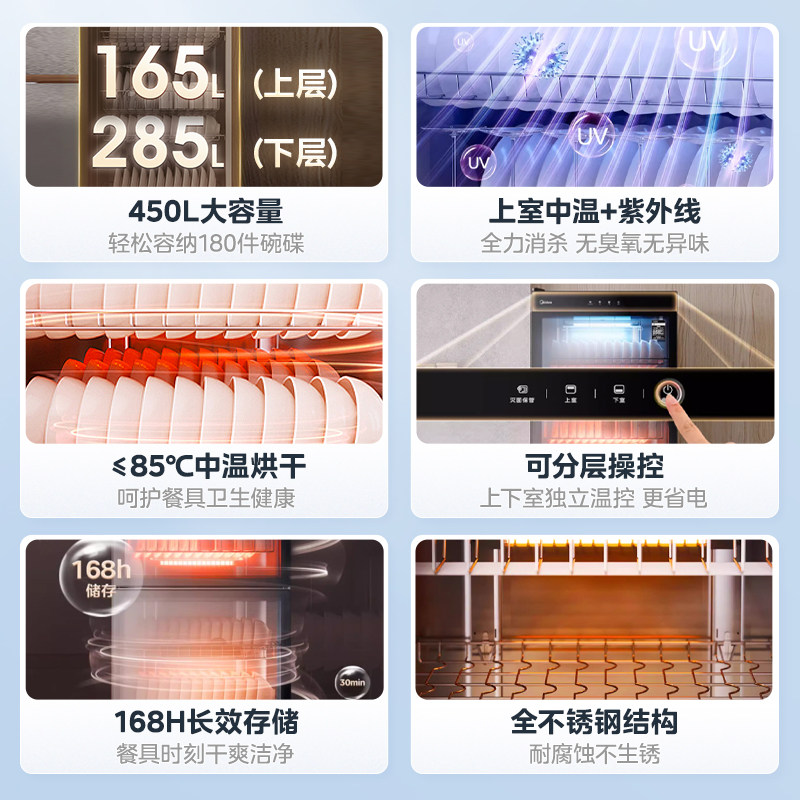 美的商用消毒柜300R03/450R04保洁柜餐饮紫外线烘干大容量碗柜19