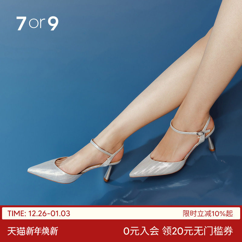 7or9凉鞋春夏季高跟鞋一字带细跟尖头休闲单鞋水晶婚鞋女鞋极光贝