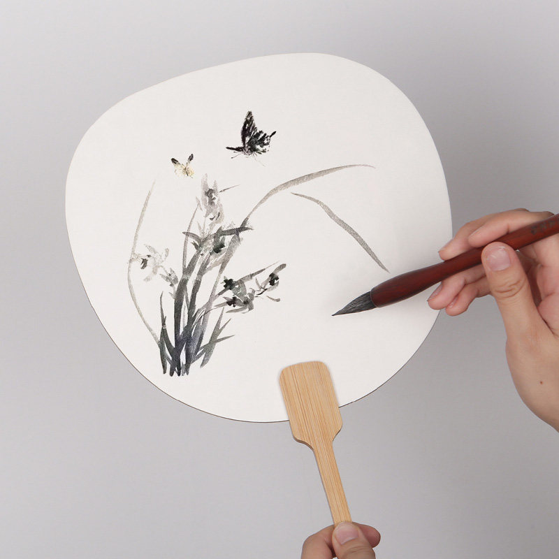 加厚宣纸团扇空白扇子古风半生熟扇面国画绘画扇子毛笔书法专用宫廷圆形纸扇diy材料包儿童中国风手绘团扇
