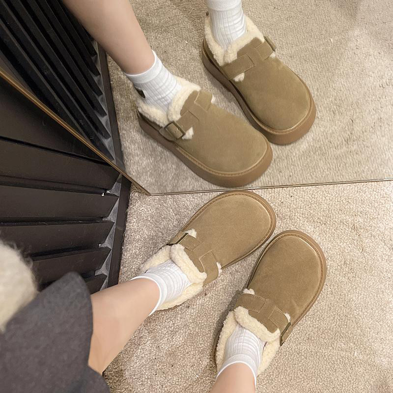 低帮厚底雪地靴女2025新款冬季懒人一脚蹬毛毛棉鞋加绒加厚女鞋子