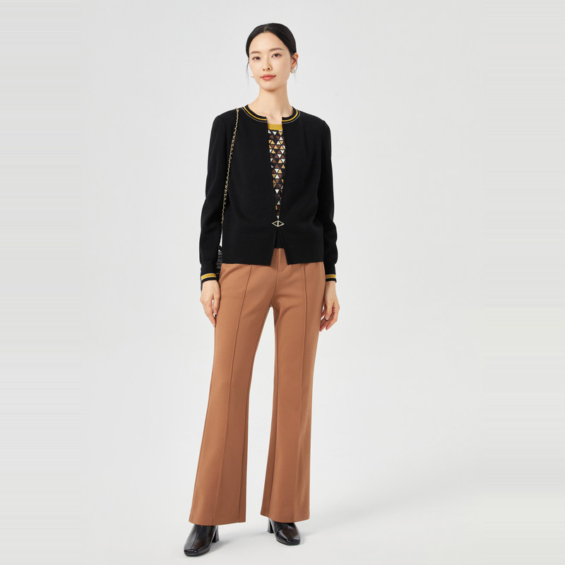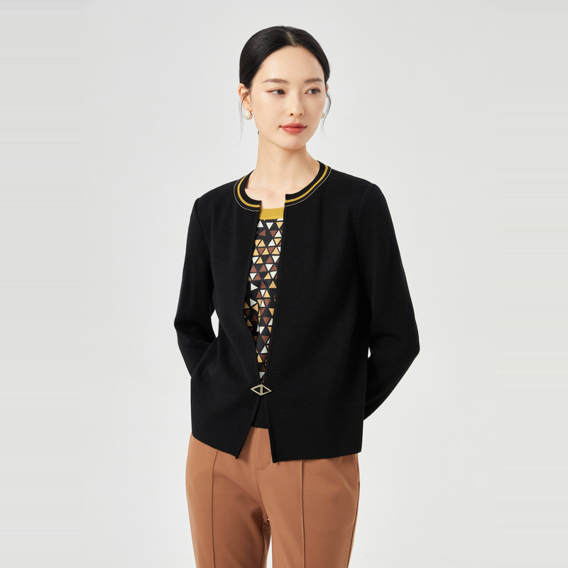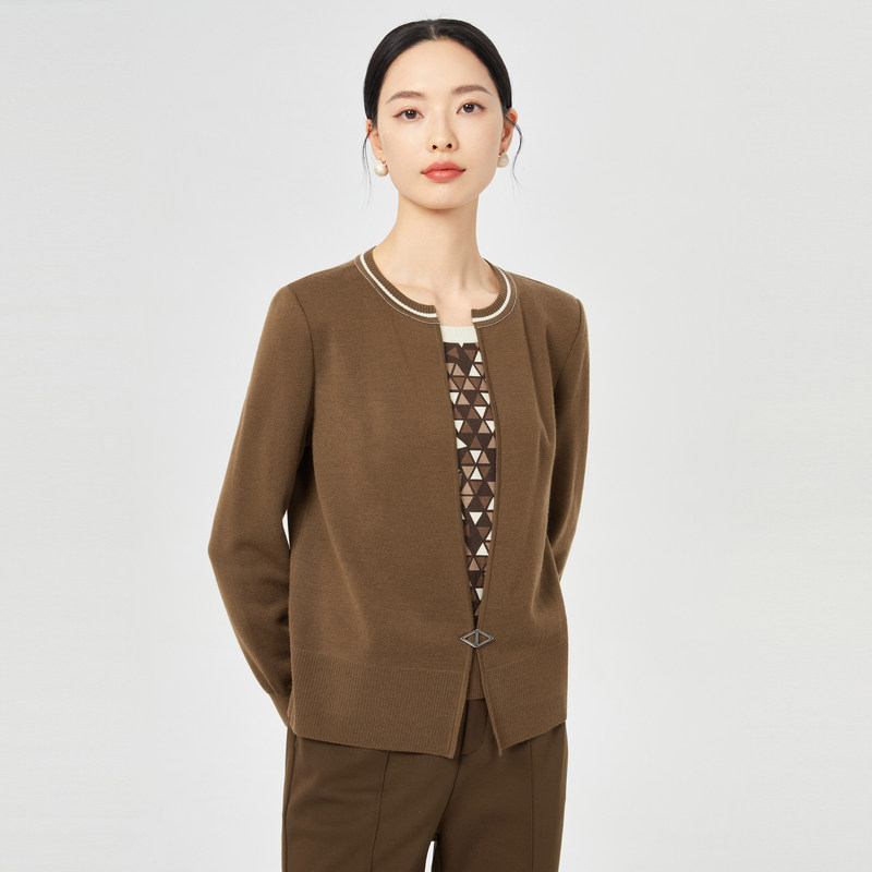 NAERSI娜尔思开衫假两件一衣两穿结构拼接装饰羊毛针织衫冬装毛衣